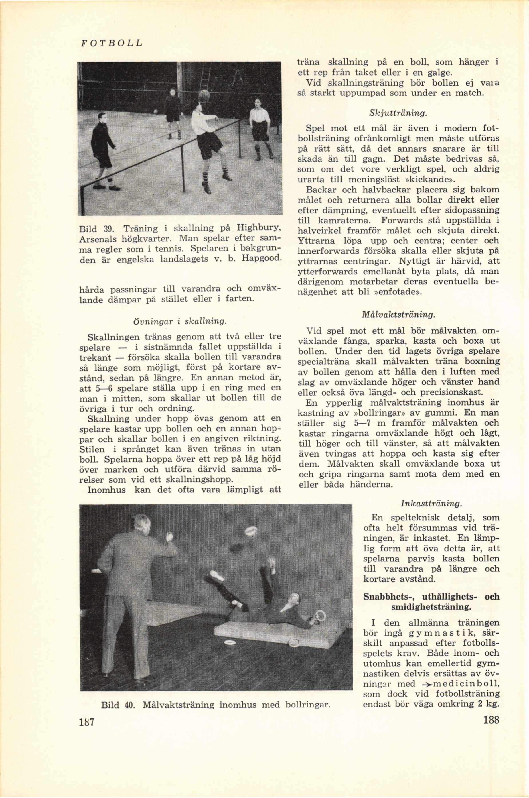 Bild 39. Träning i skallning på Highbury,