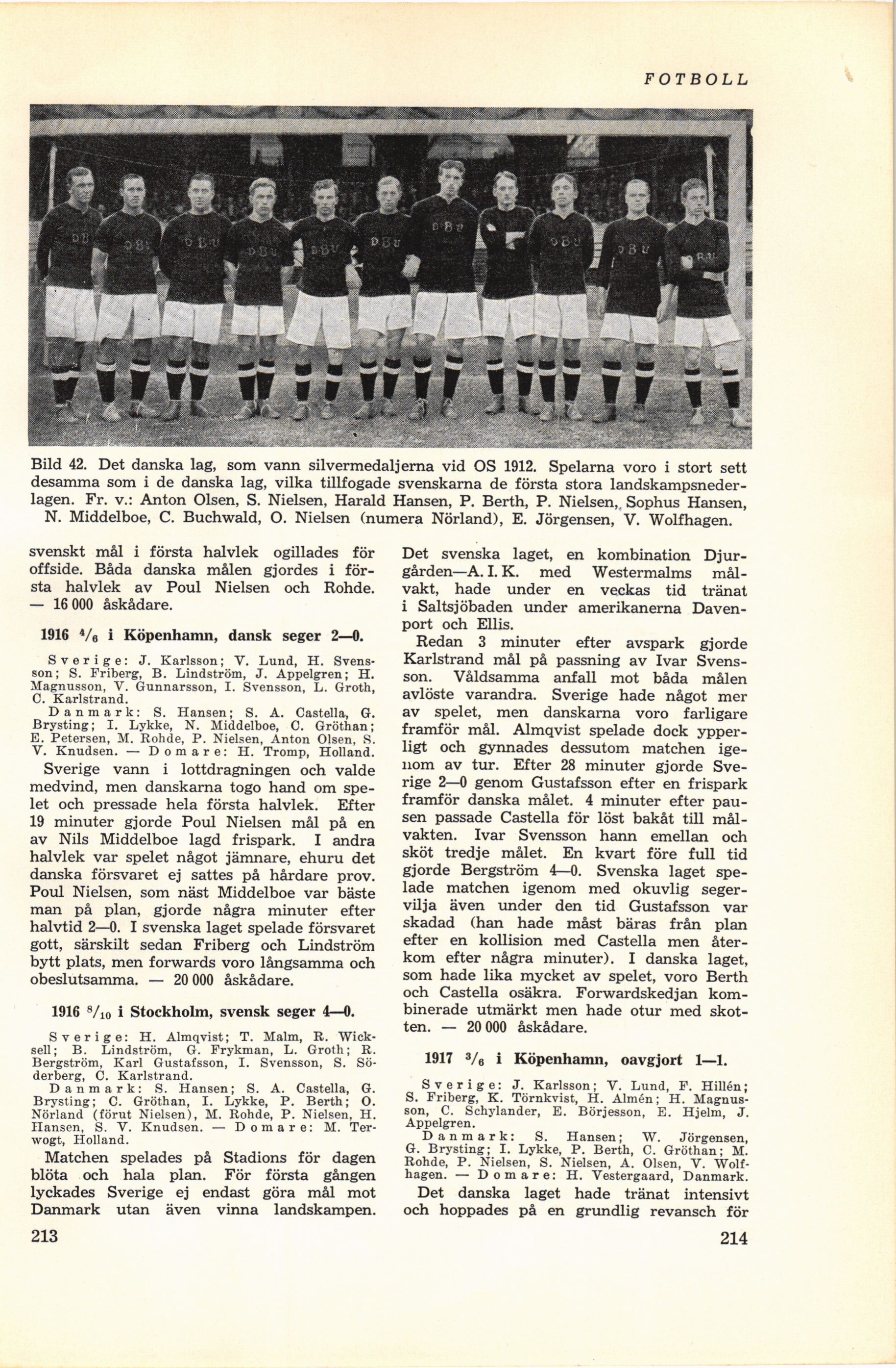 Bild 42. Det danska lag, som vann silvermedaljerna vid OS 1912. Spelarna voro i stort sett