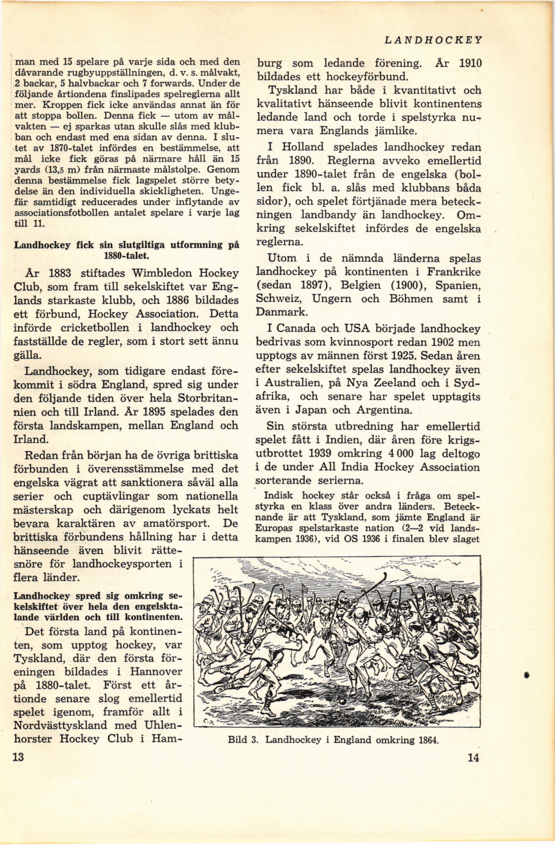 Bild 3. Landhockey i England omkring 1864.