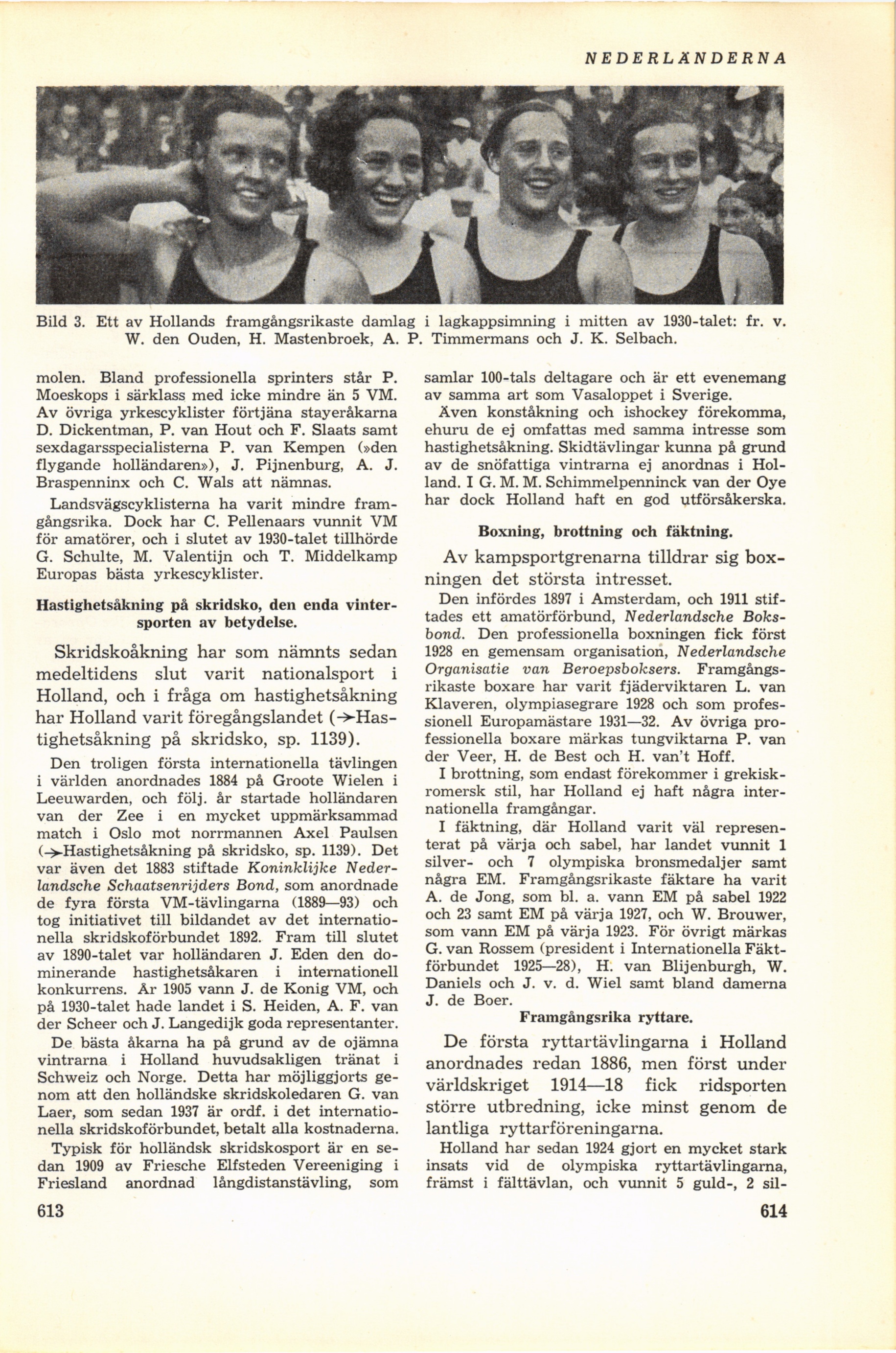 Bild 3. Ett av Hollands framgångsrikaste damlag i lagkappsimning i mitten av 1930-talet: fr. v.