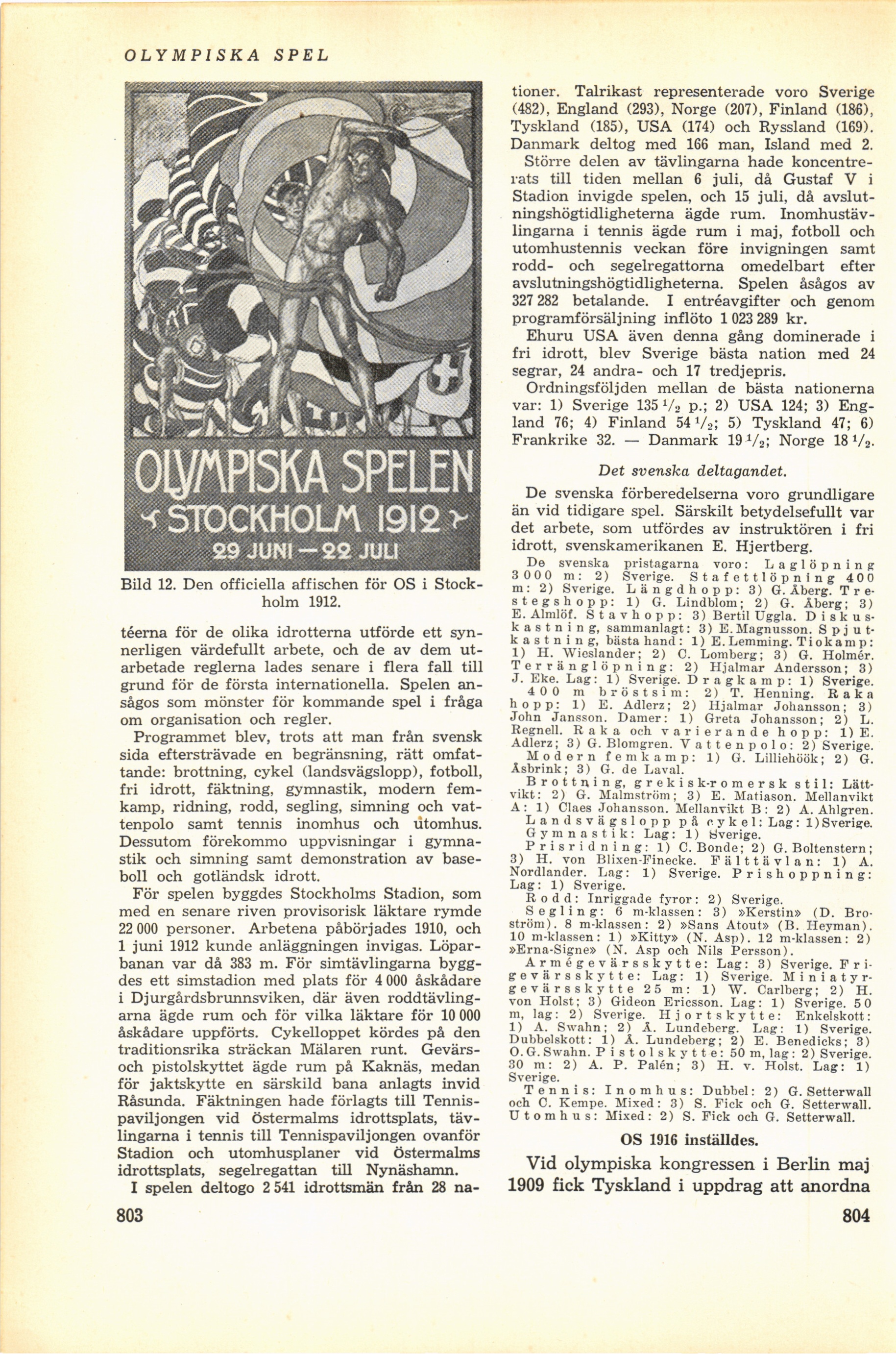1) A. Swahn: 2) Å. Lundeberg. Lag: 1) Sverige.