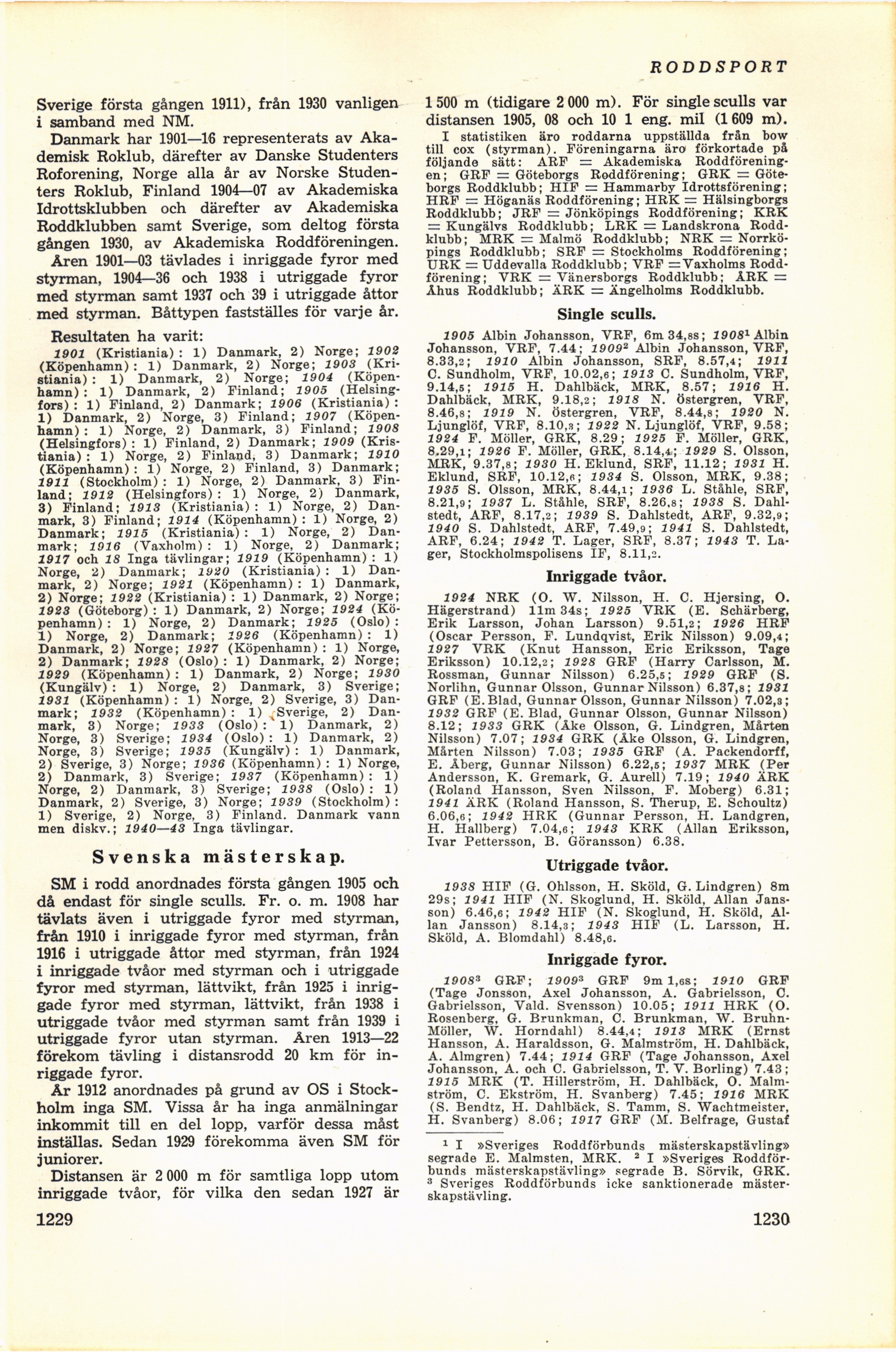 Jansson) 6.46,6; 1942 HIF (N. Skoglund, H. Sköld,