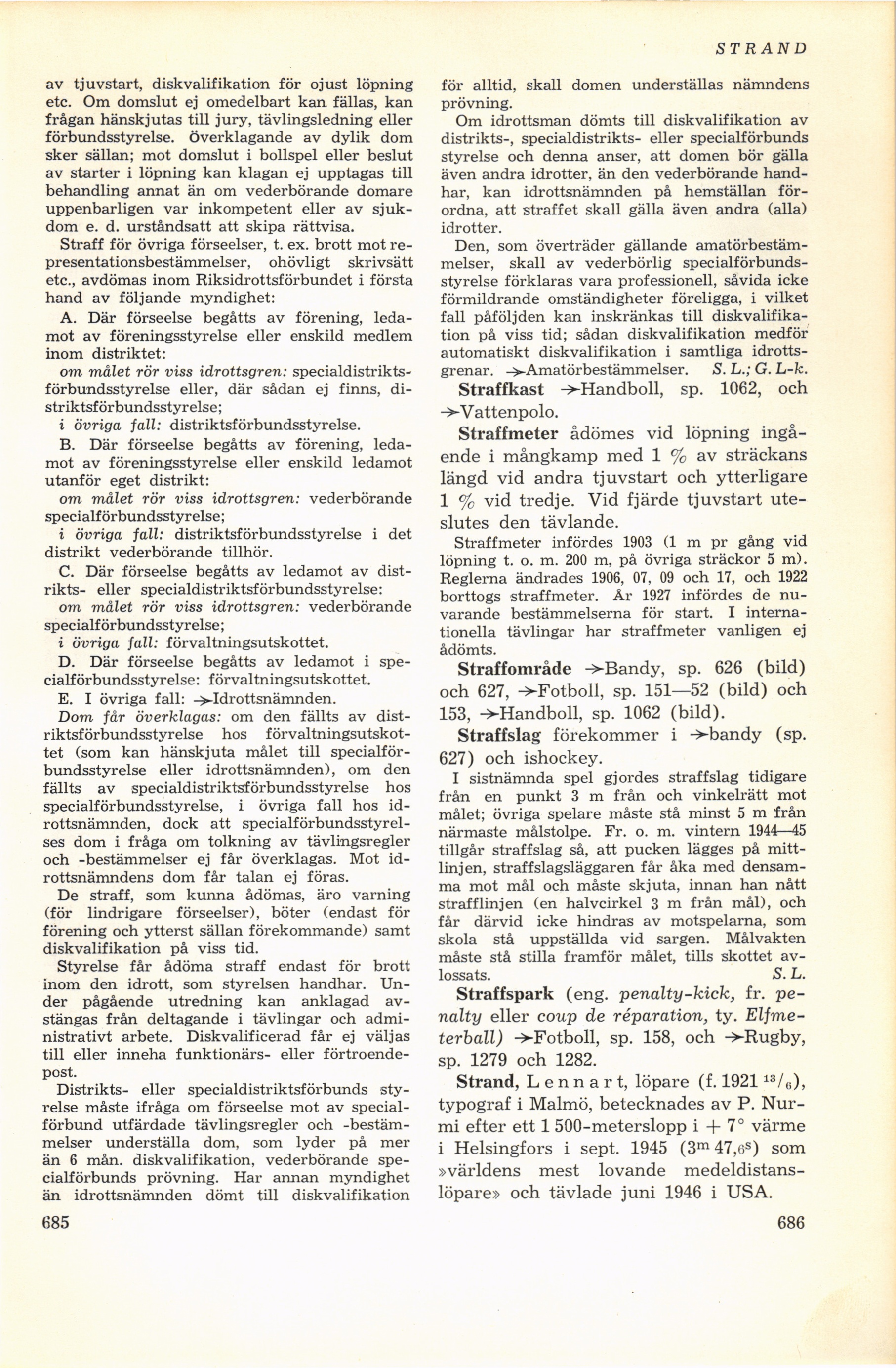 Full resolution (JPEG) - On this page / på denna sida - Straffbestämmelser - Straffkast →Handboll, sp. 1062, och →Vattenpolo - Straffmeter - Straffområde - Straffslag - Straffspark - Strand, Lennart