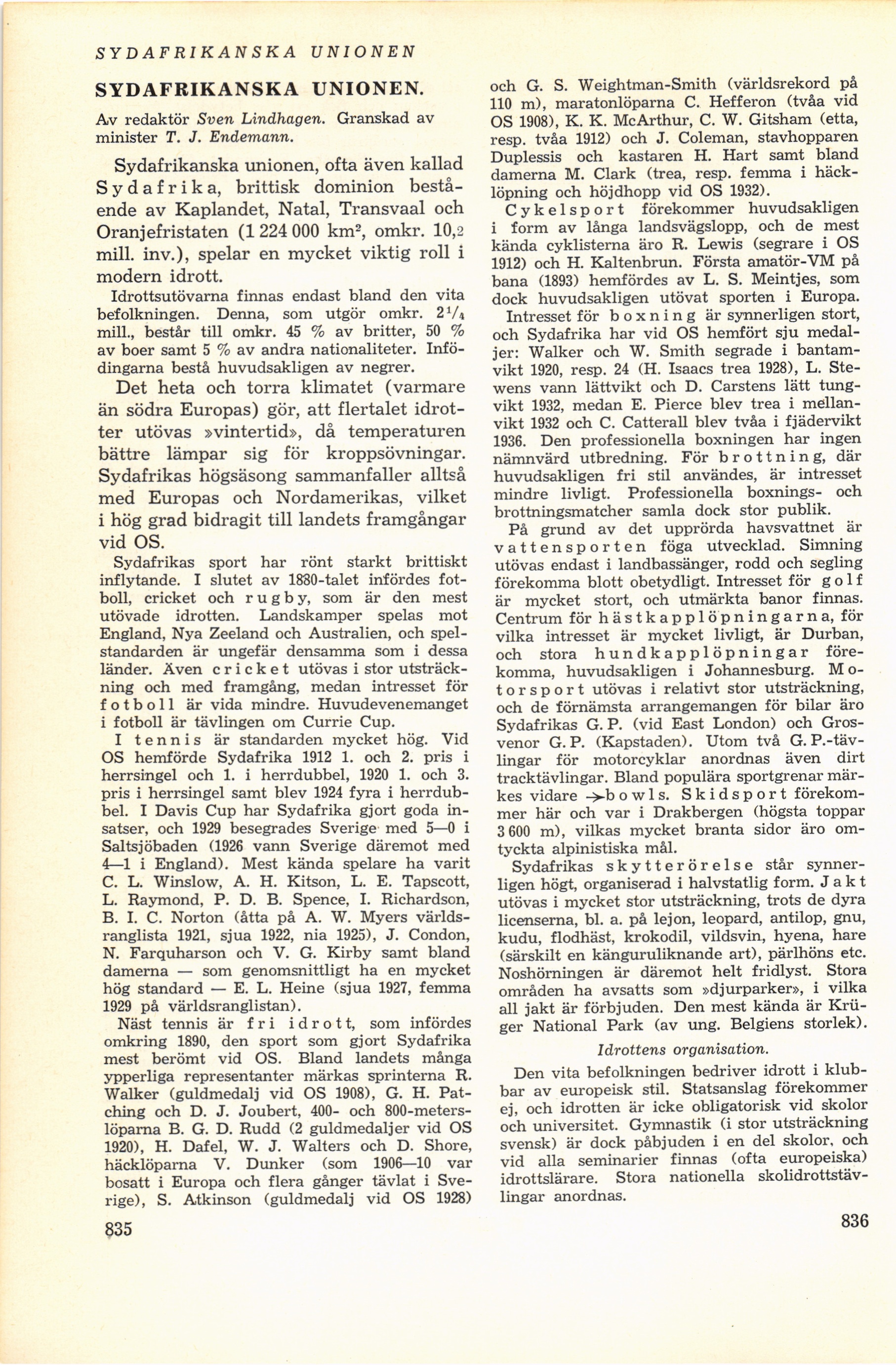 Full resolution (JPEG) - On this page / på denna sida - Sydafrikanska Unionen, av redaktör Sven Lindhagen och minister T. J. Endemann