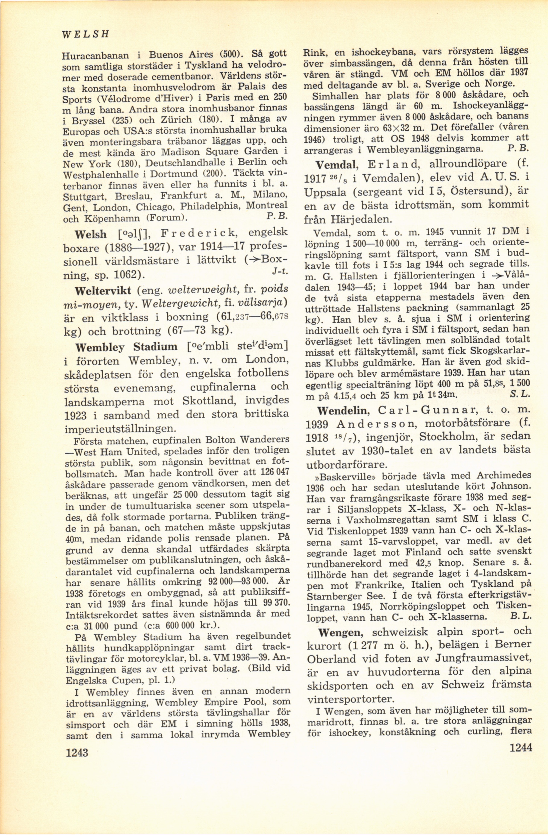 Full resolution (JPEG) - On this page / på denna sida - Velodrom - Welsh, Frederick - Weltervikt - Wembley Stadium - Vemdal, Erland - Wendelin, Carl-Gunnar, t. o. m. 1939 Andersson - Wengen
