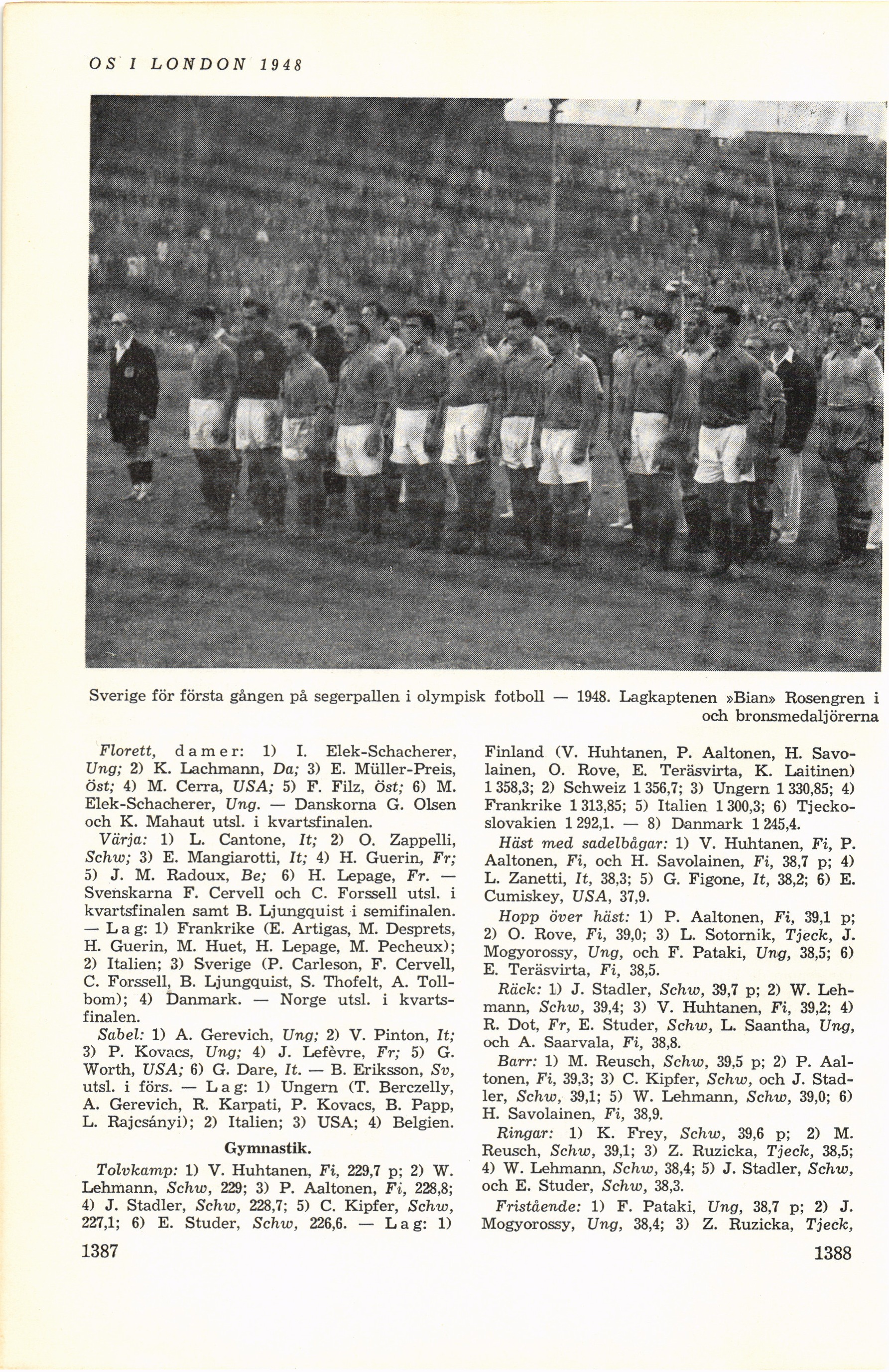 Sverige för första gången på segerpallen i olympisk fotboll — 1948. Lagkaptenen »Bian» Rosengren i