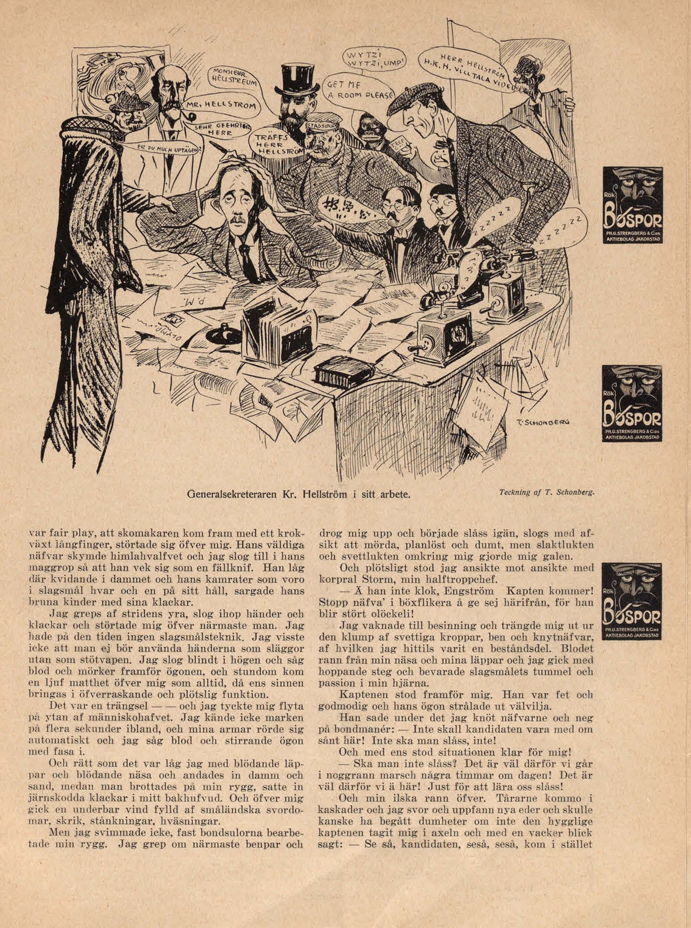 | Generalsekreteraren Kr. Hellström i sitt arbete. Teckning af T. Schonberg. |