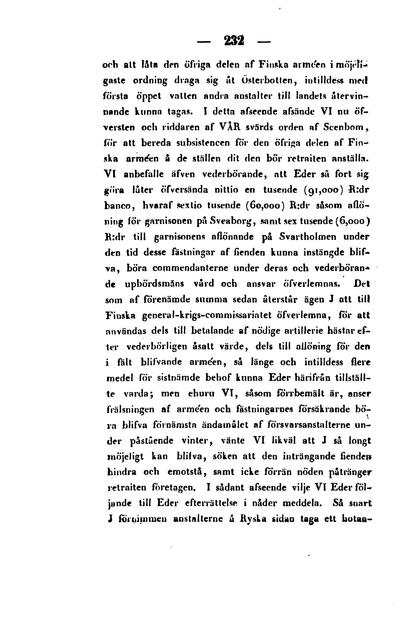 aflö-ning för garnisonen på Sveaborg, samt sex tusende (6,000)