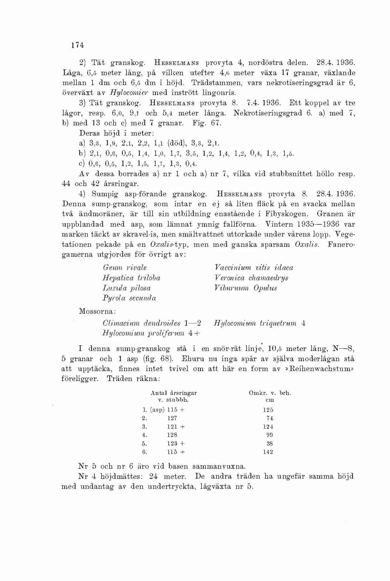 3) Tät granskog. Hesselmans provyta 8. 7.4. 1936. Ett koppel av tre