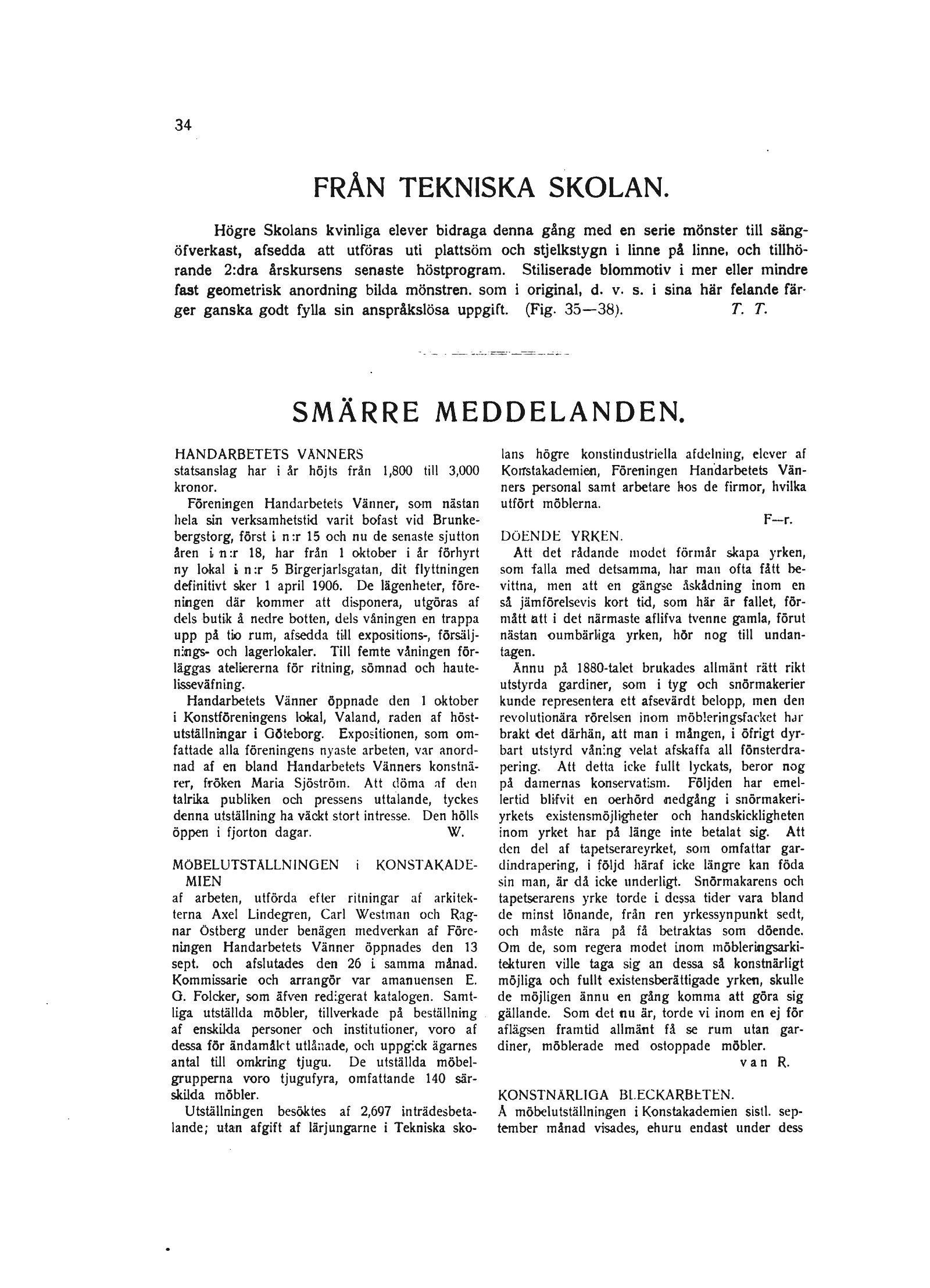 Högre Skolans kvinliga elever bidraga denna gång med en serie mönster till