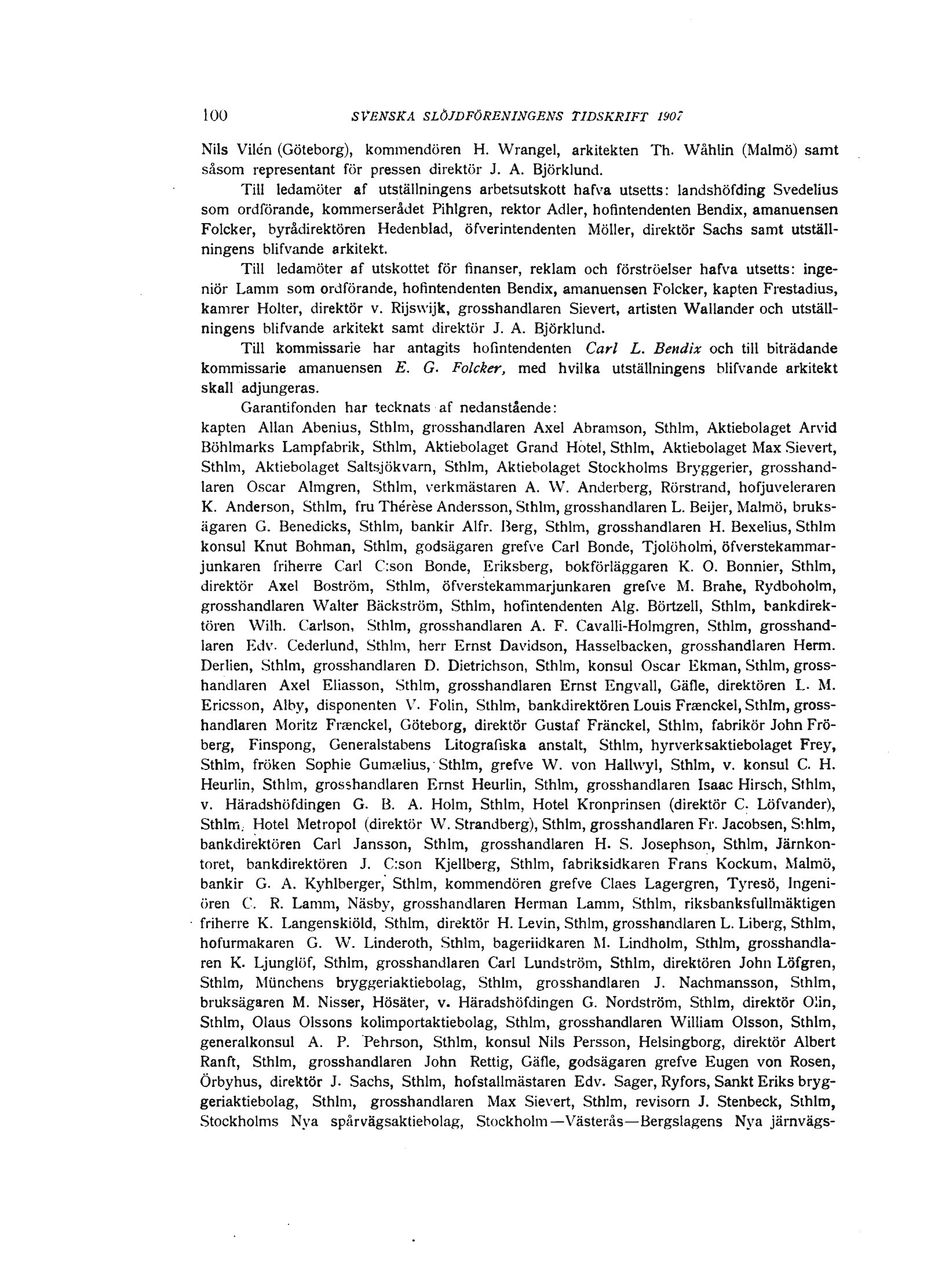 K. Anderson, Sthlm, fru Thérése Andersson, Sthlm, grosshandlaren L. Beijer, Malmö,