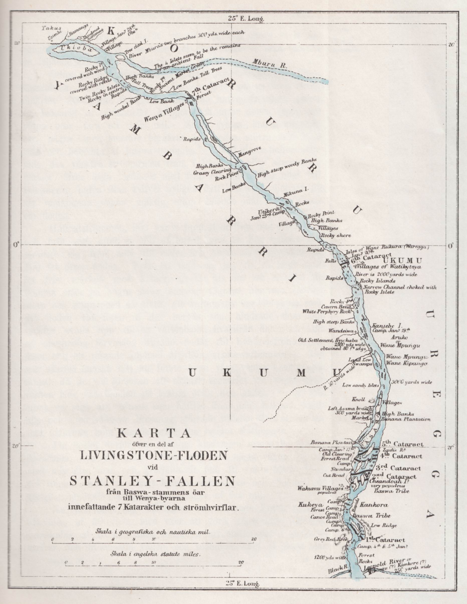 | Karta över en del av Livingstone-floden vid Stanley-fallen. |