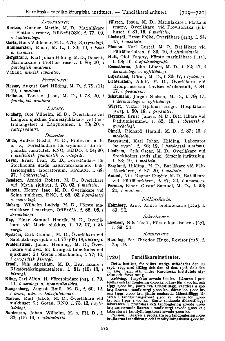 Karolinska mediko-kirurgiska institutet. — Tandläkareinstitutet. [719—720J