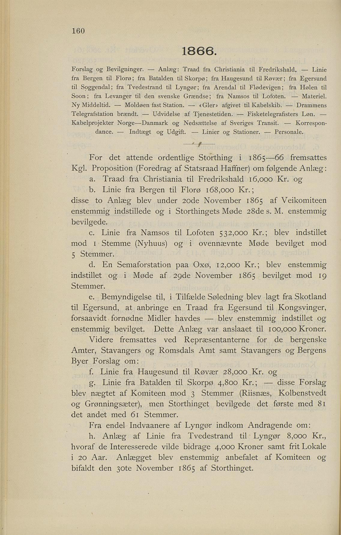 b. Linie fra Bergen til Florø 168,000 Kr.;