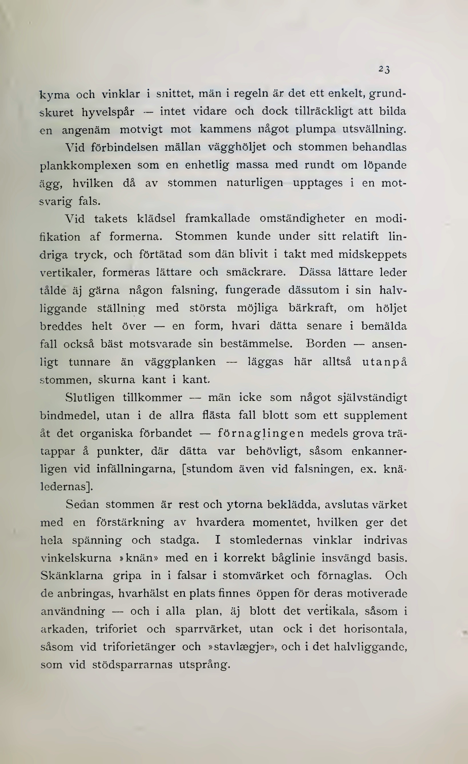 hela spänning och stadga. I stomledernas vinklar indrivas