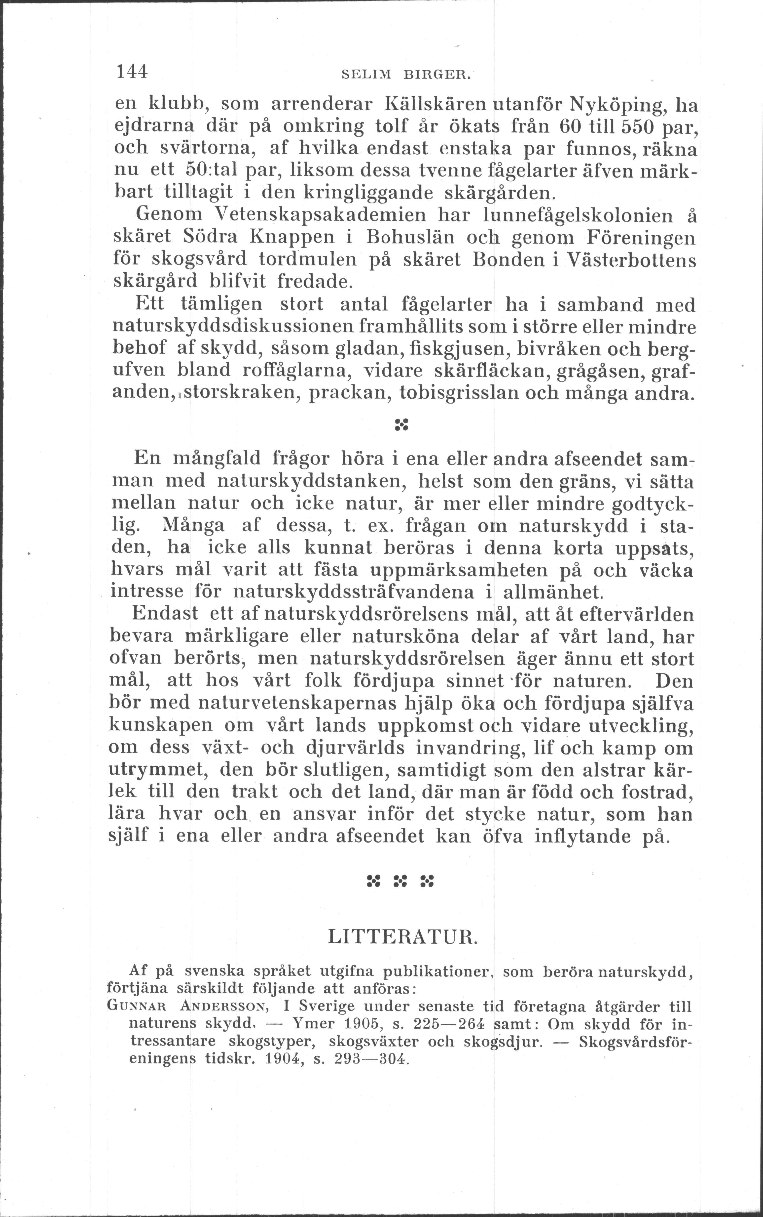 naturens skydd, – Ymer 1905, s. 225-264 samt: Om