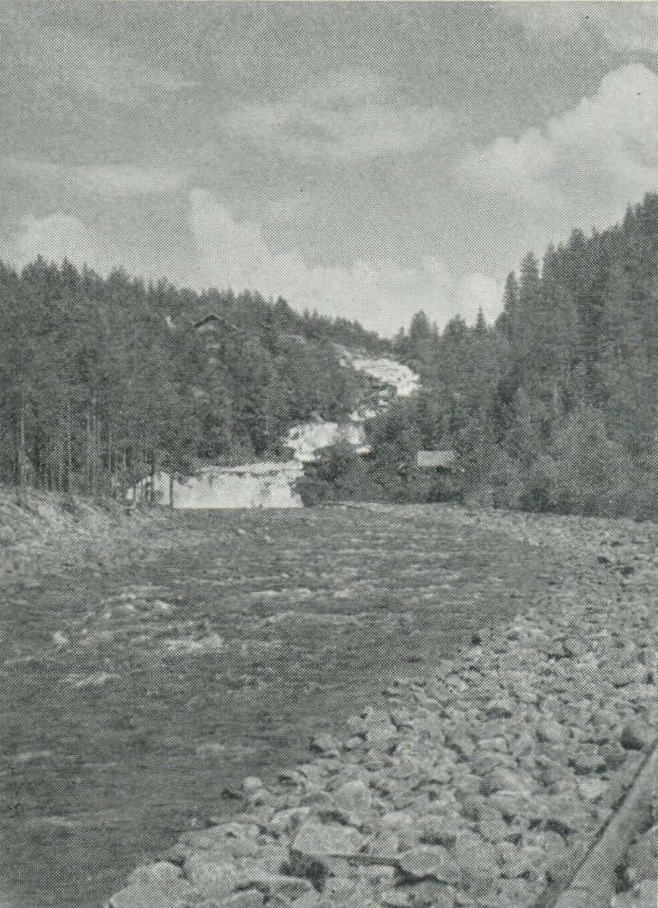 Fallet i Femtån, ett av Klarälvens tillflöden, vilka i ståtliga vattenfall kasta sig utför de branta dalsidorna. C. G. Rosenberg foto. |