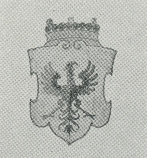 sköld med kronor, vilken tidigast en gång på 1600-talet suttit pä