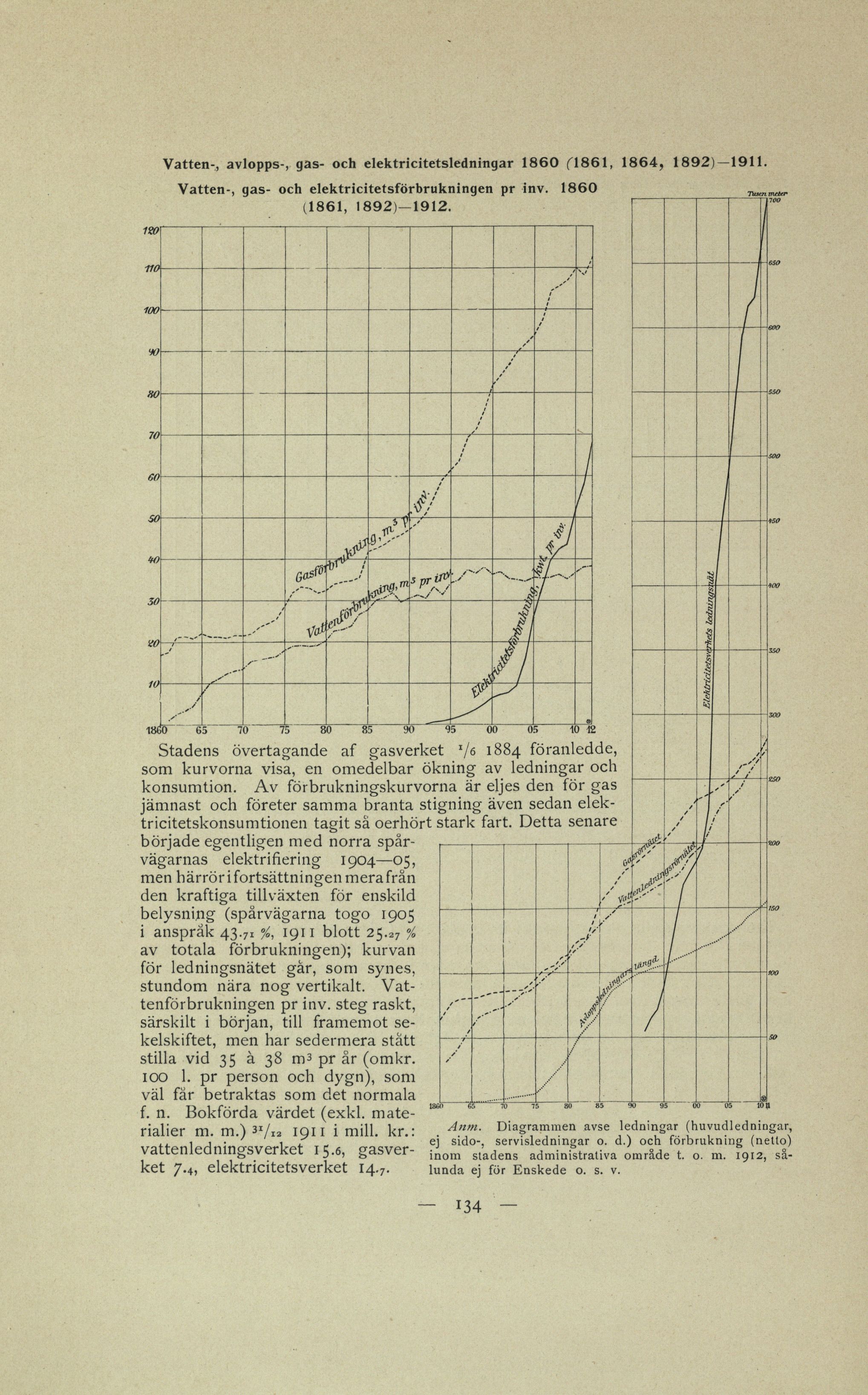 Vatten-, gas- och elektricitetsförbrukningen pr inv. 1860 Sn