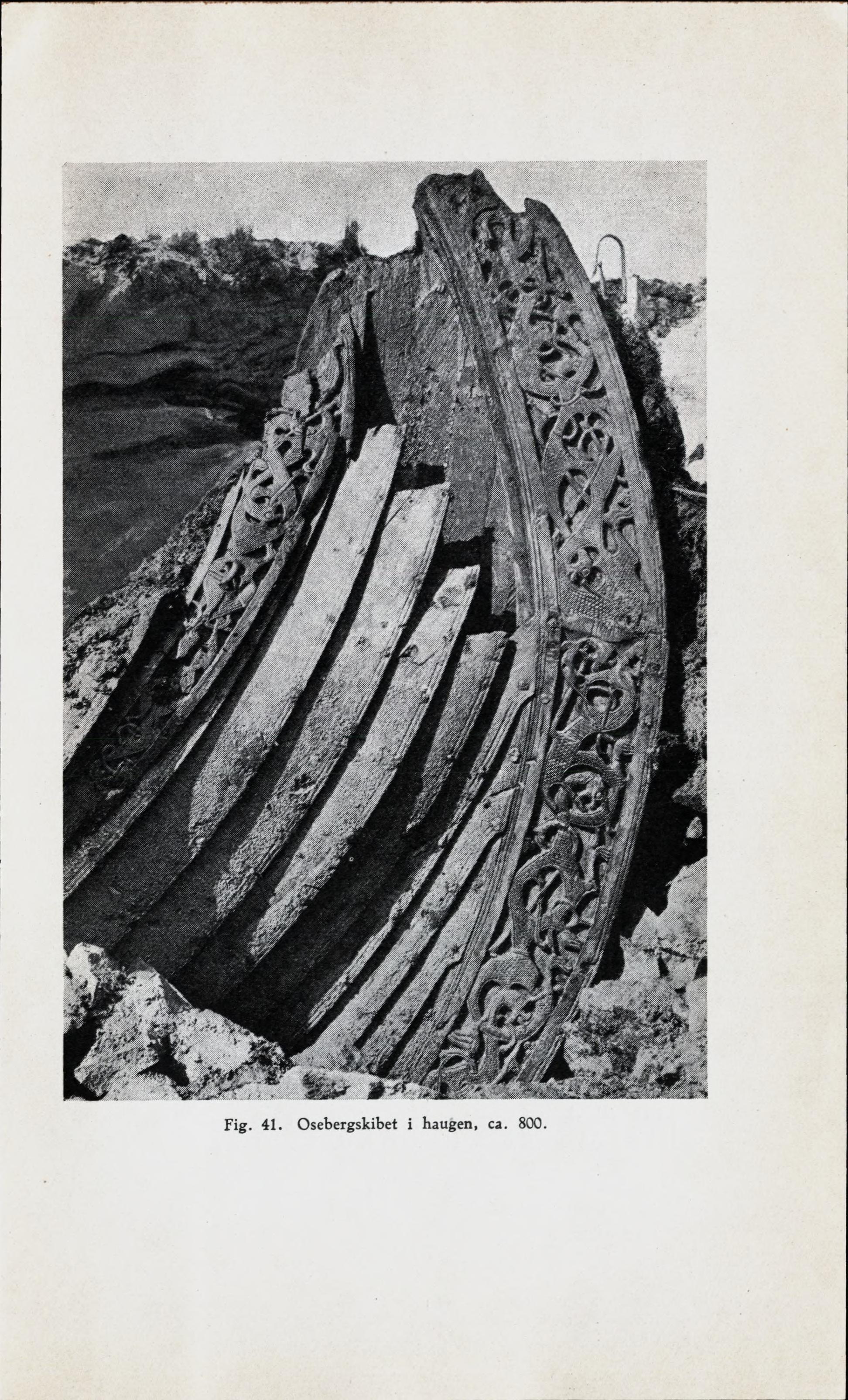 Fig. 41. Osebergskibet i haugen, ca. 800.