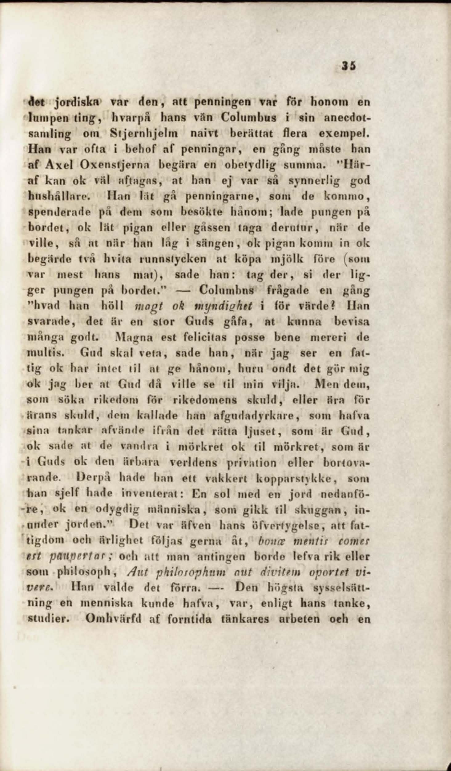 lumpen ting, hvarpå hans vän Columbus i sin anecdotsamling