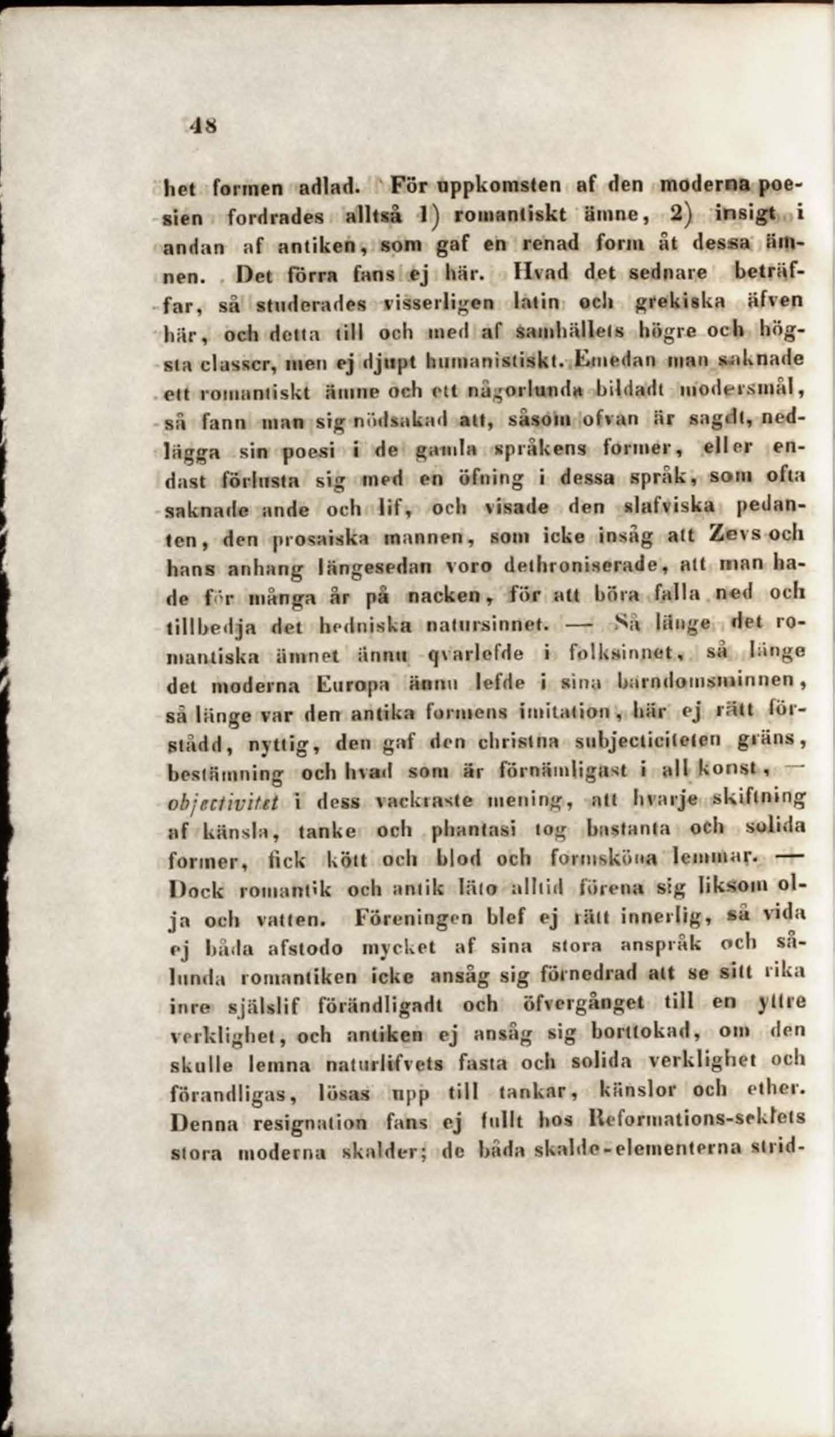 poesién fordrades alltså 1) romantiskt ämne, 2) insigt i