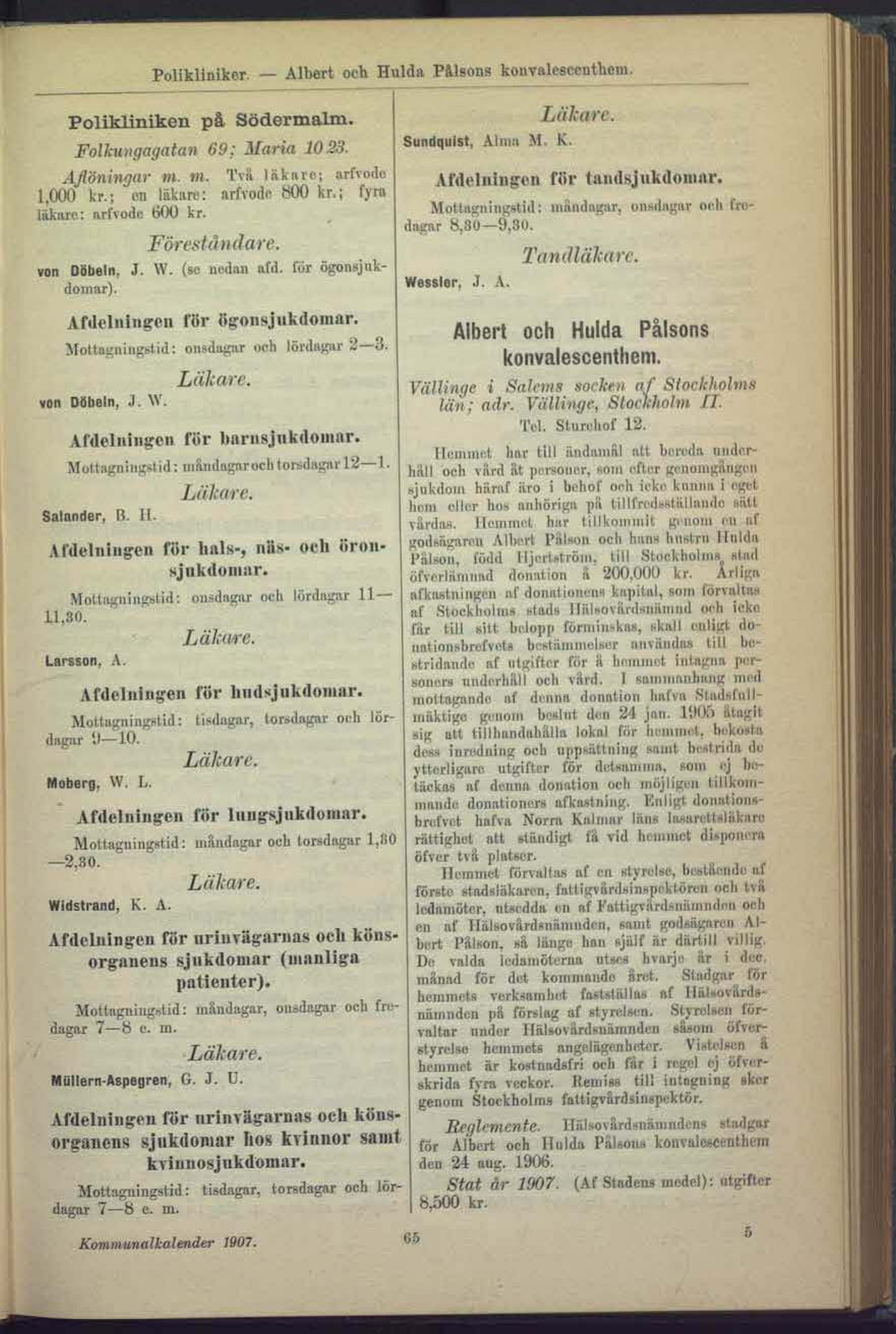 Polikliniker. — Albert och Hulda Pålsons konvalesccnthcm.
