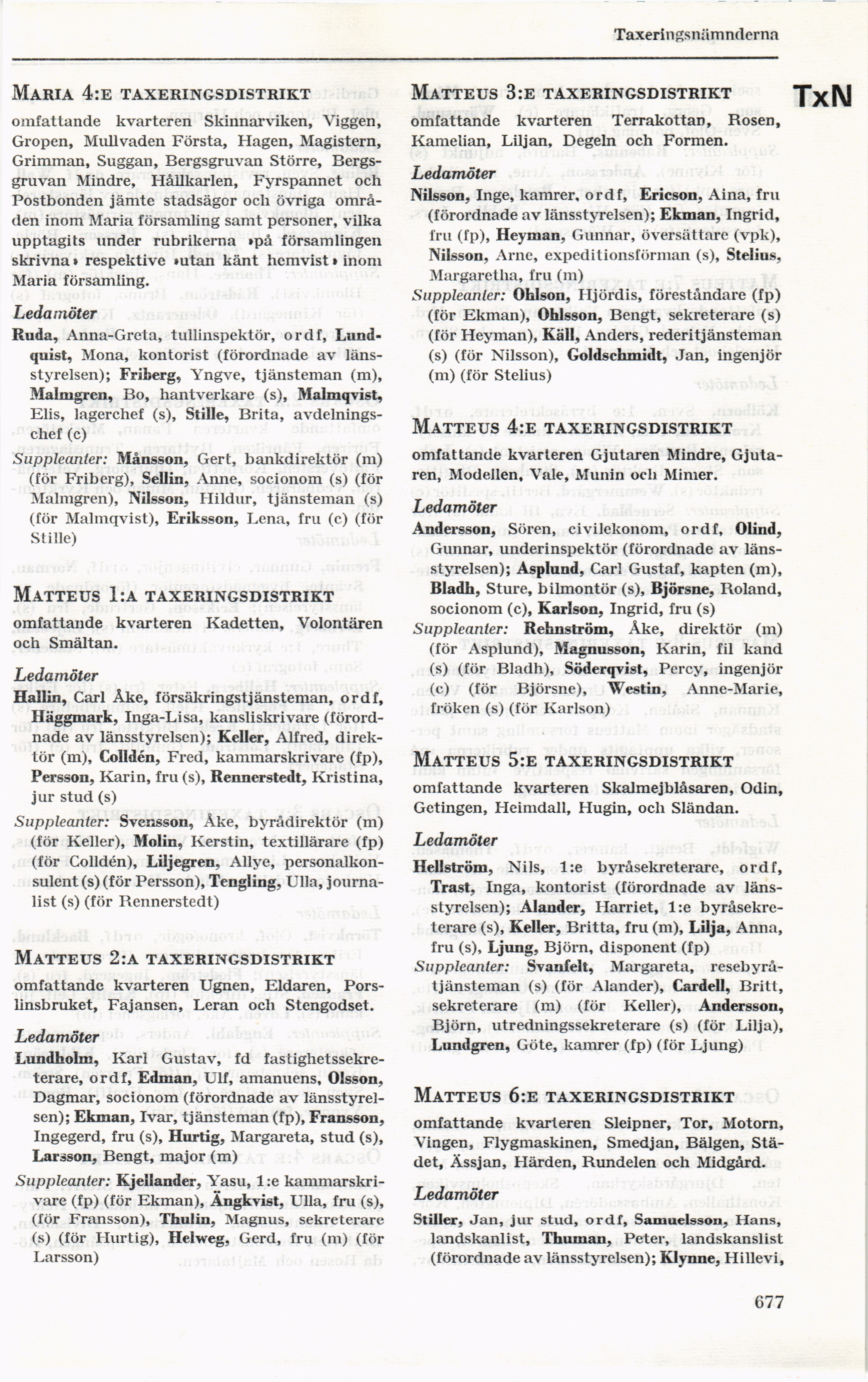 områden inom Maria församling samt personer, vilka
