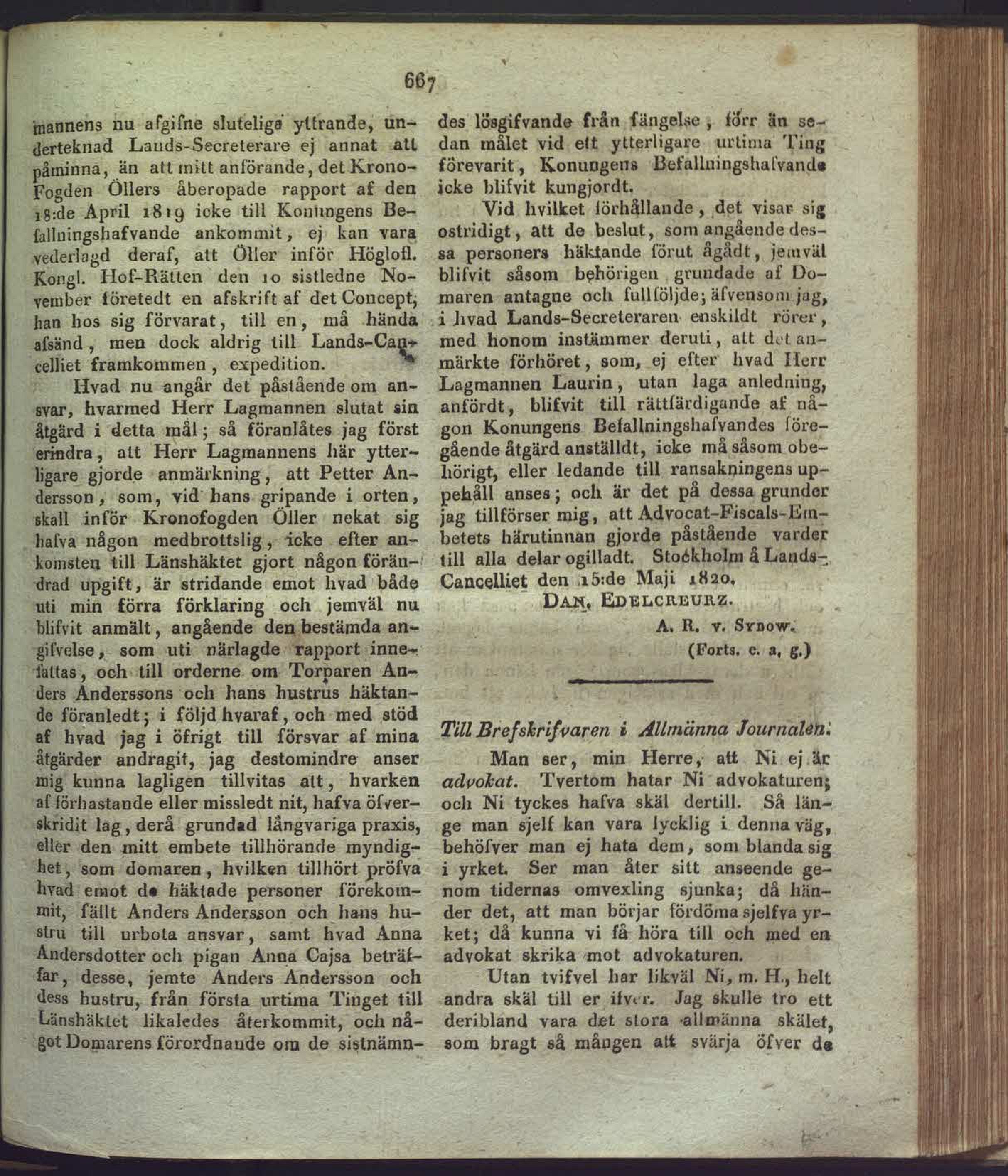 Till Brefskrifvaren i Allmänna JoiimaUn’.