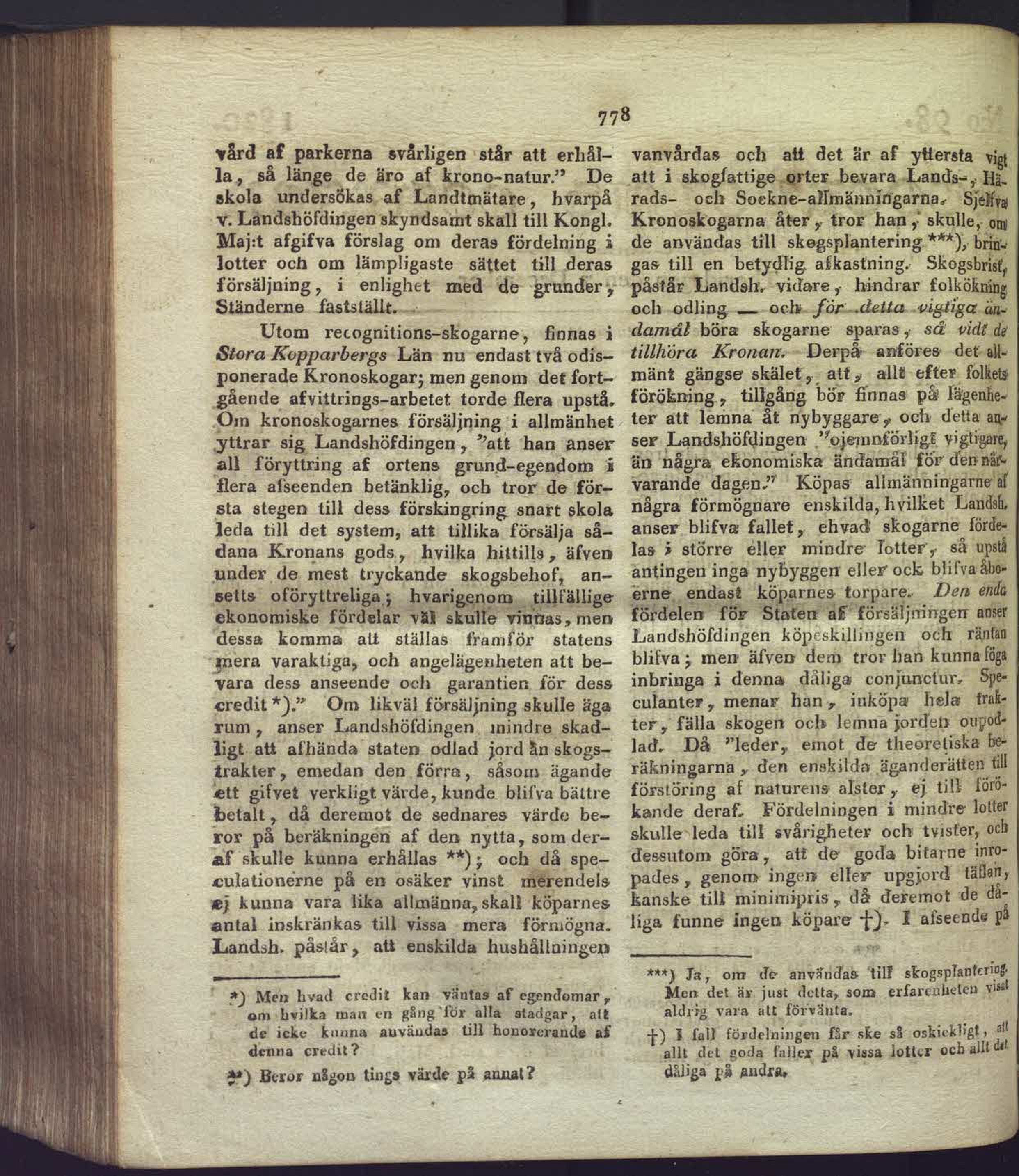 skadligt att afhända staten odlad jord ån