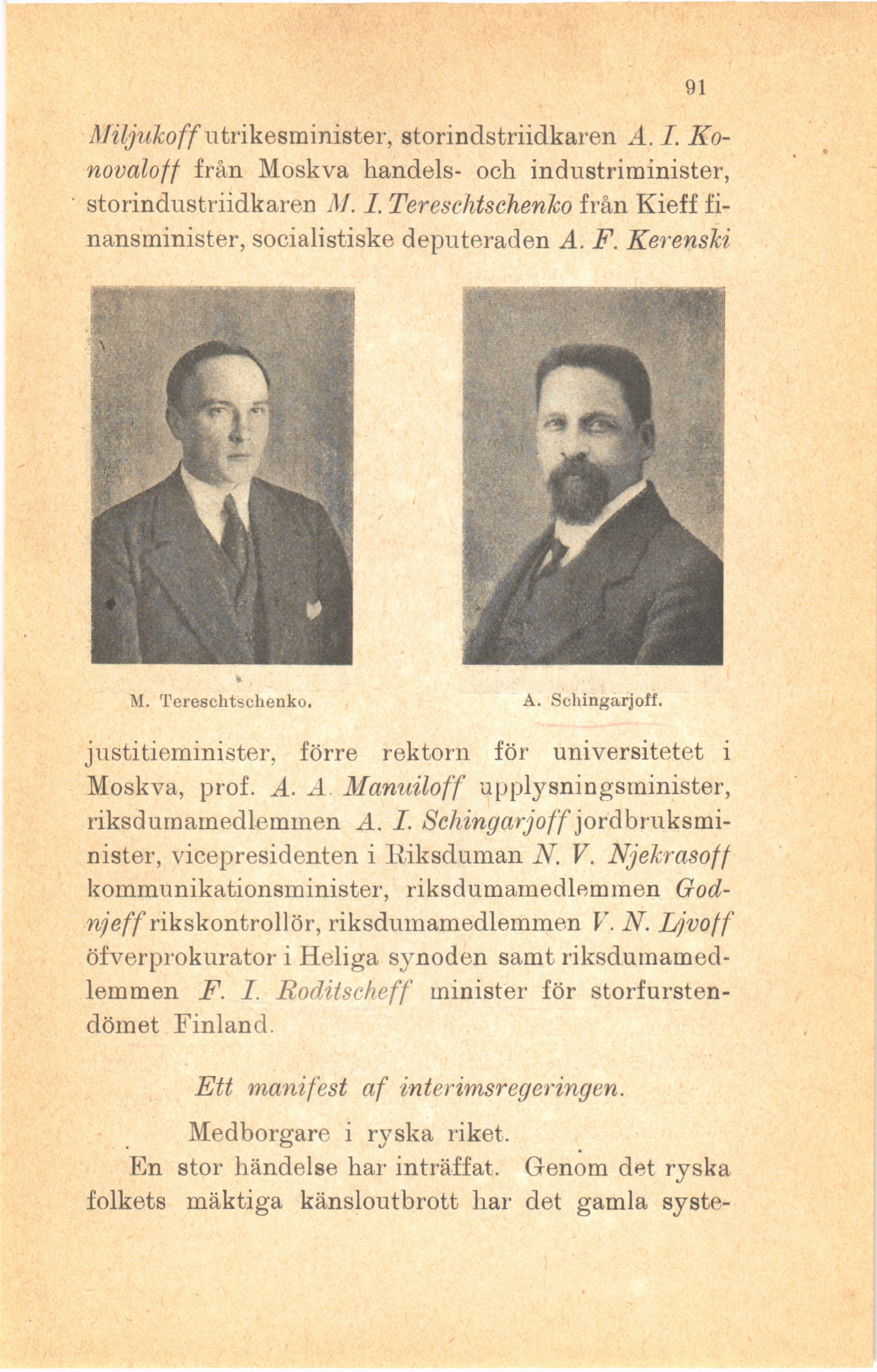Miljukoff utrikesminister, storindstriidkaren A. I.