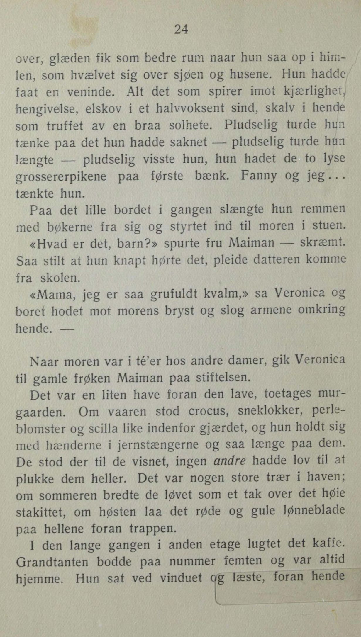 «Mama, jeg er saa grufuldt kvalm,» sa Veronica og