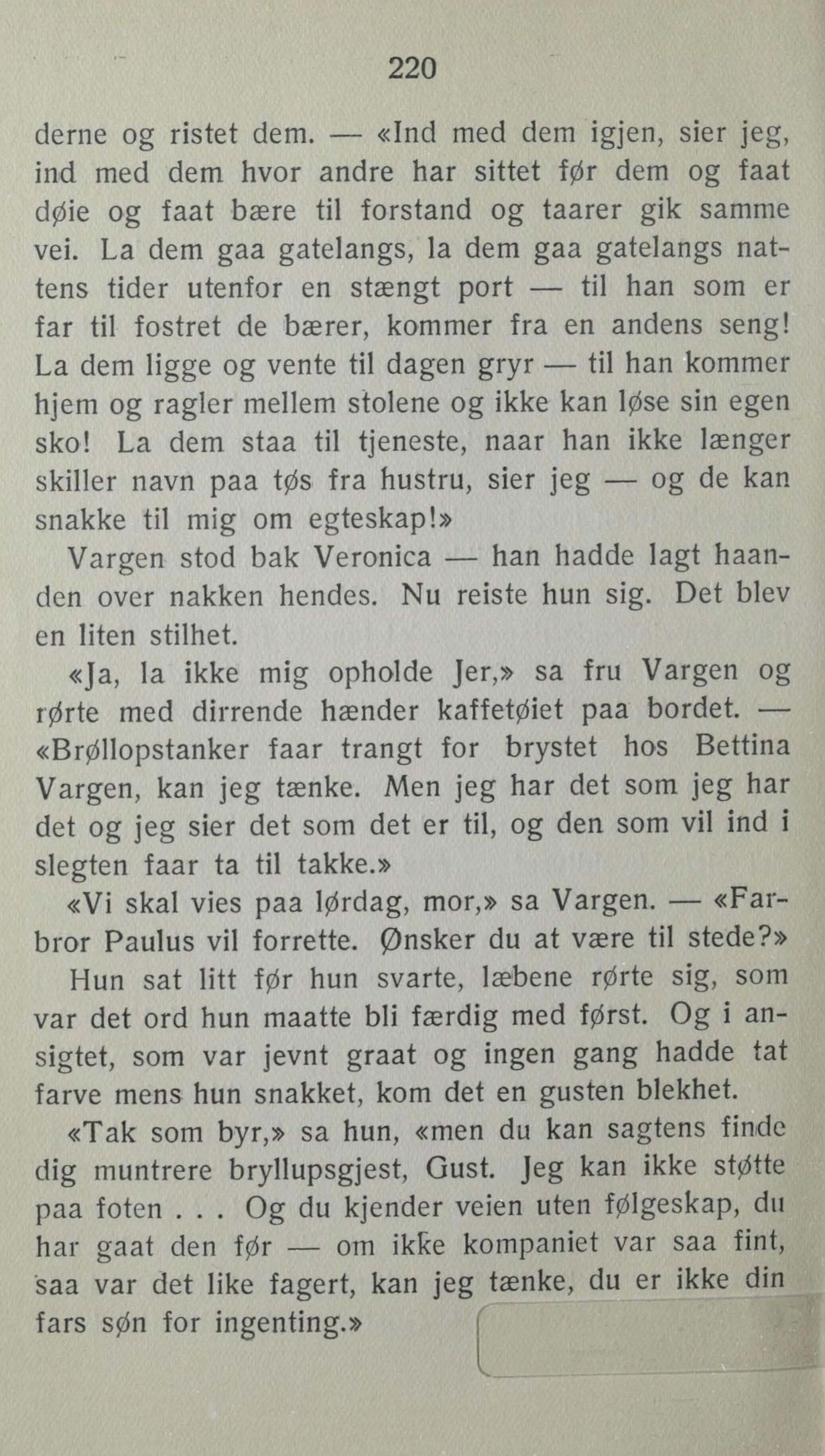 «Vi skal vies paa lørdag, mor,» sa Vargen. —