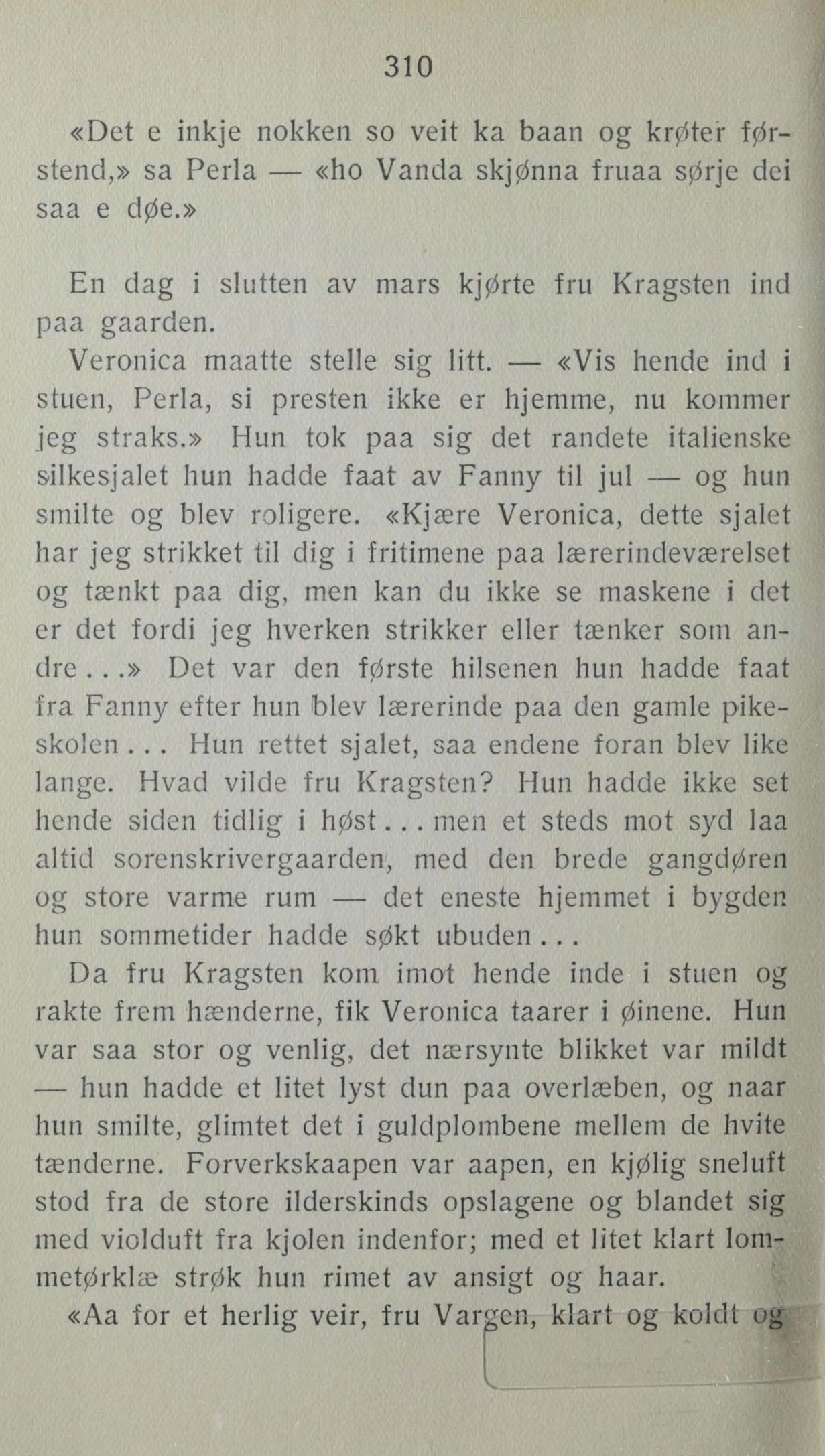 smilte og blev roligere. «Kjære Veronica, dette sjalet