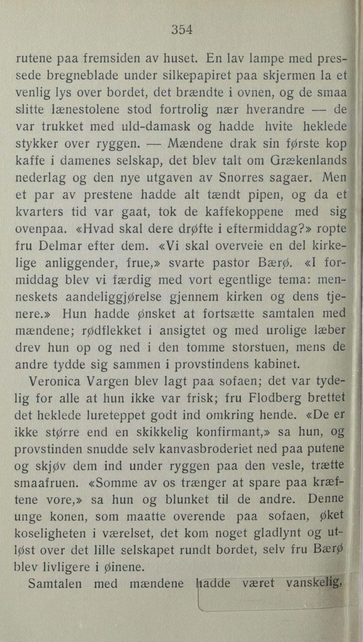 kirkelige anliggender, frue,» svarte pastor Bærø. «I