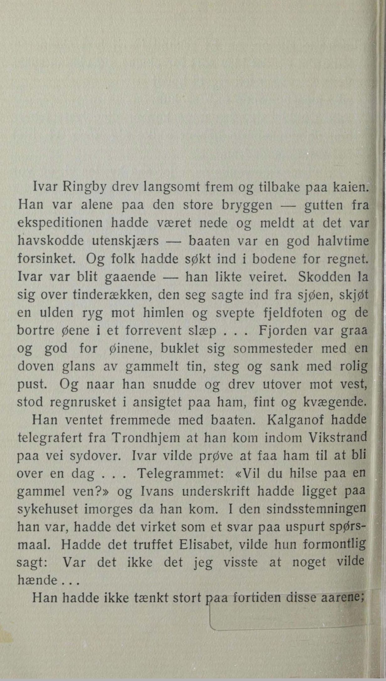 bortre øene i et forrevent slæp . . . Fjorden var graa