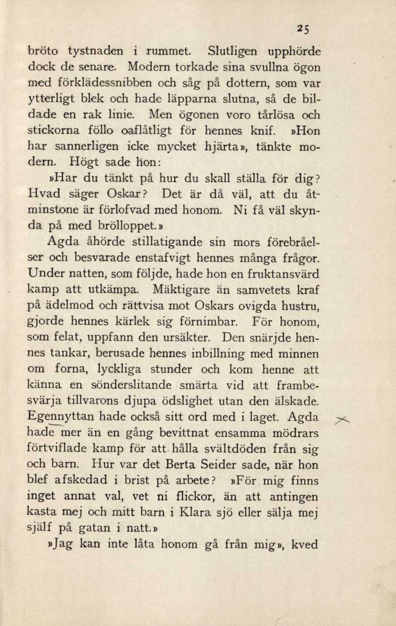 Agda åhörde stillatigande sin mors förebråel-