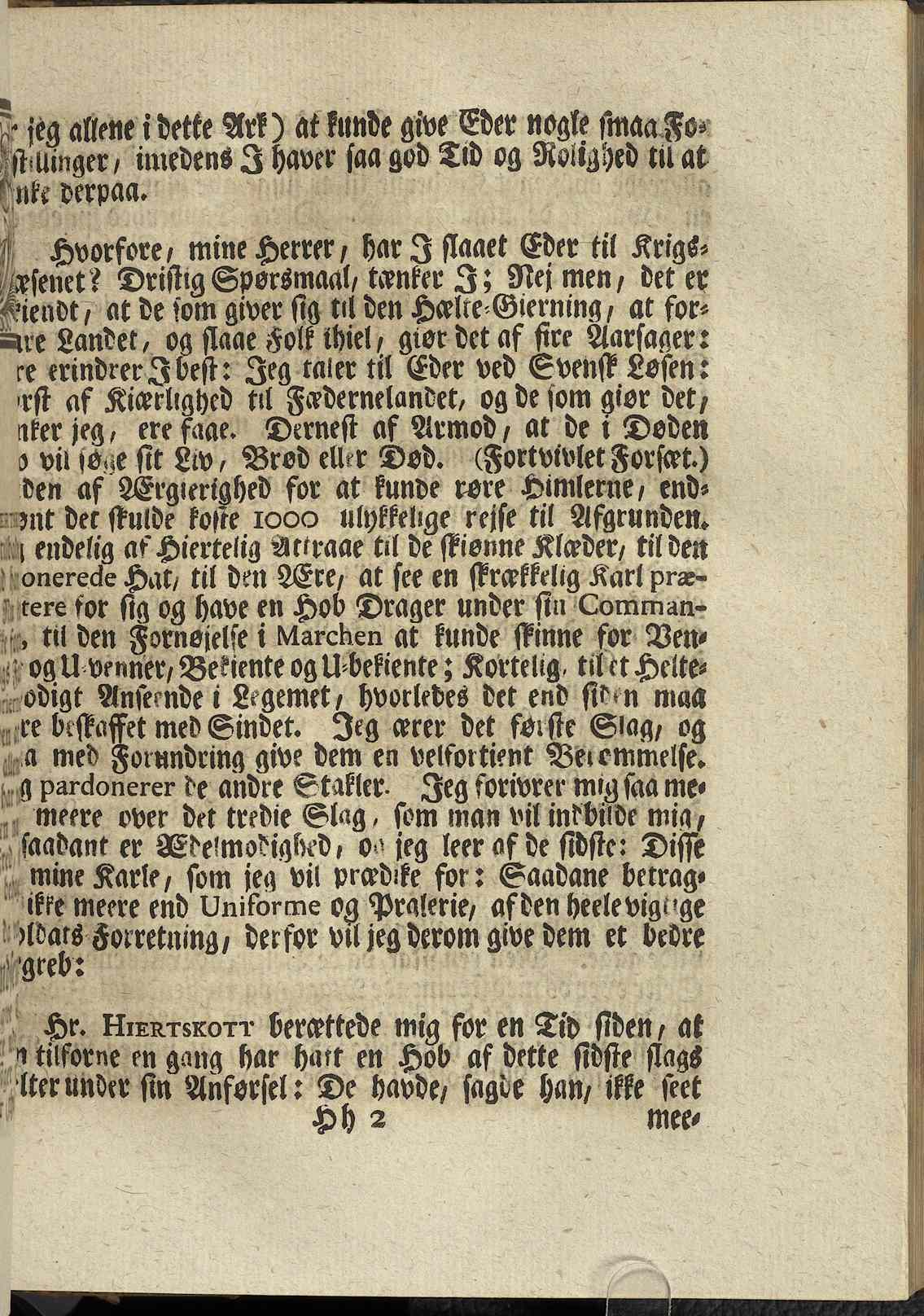 s) Hvorfore, mine Herrer , harJ slaaet Eder til Krige-