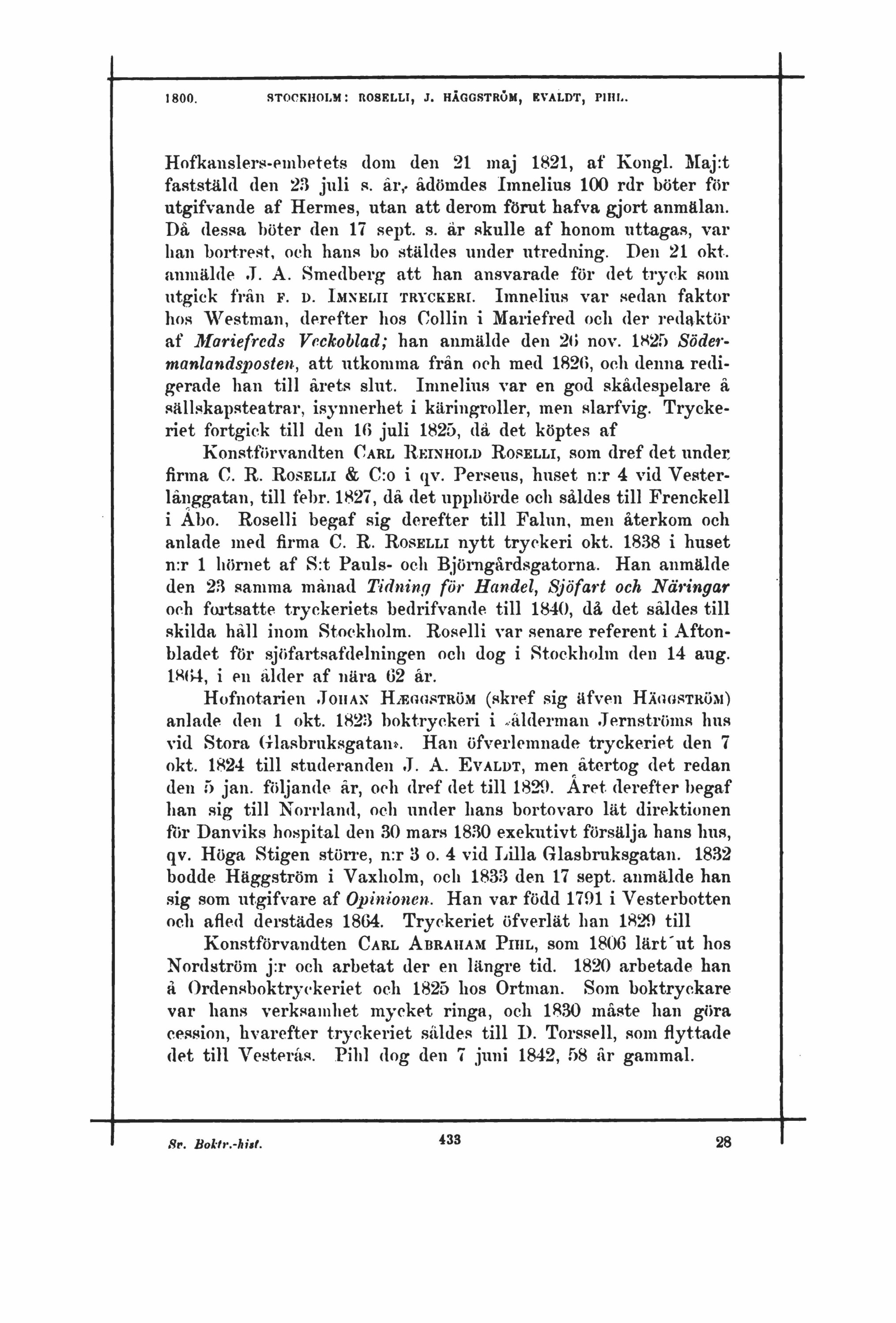 och afled derstädes 1864. Tryckeriet öfverlät han 1829 till