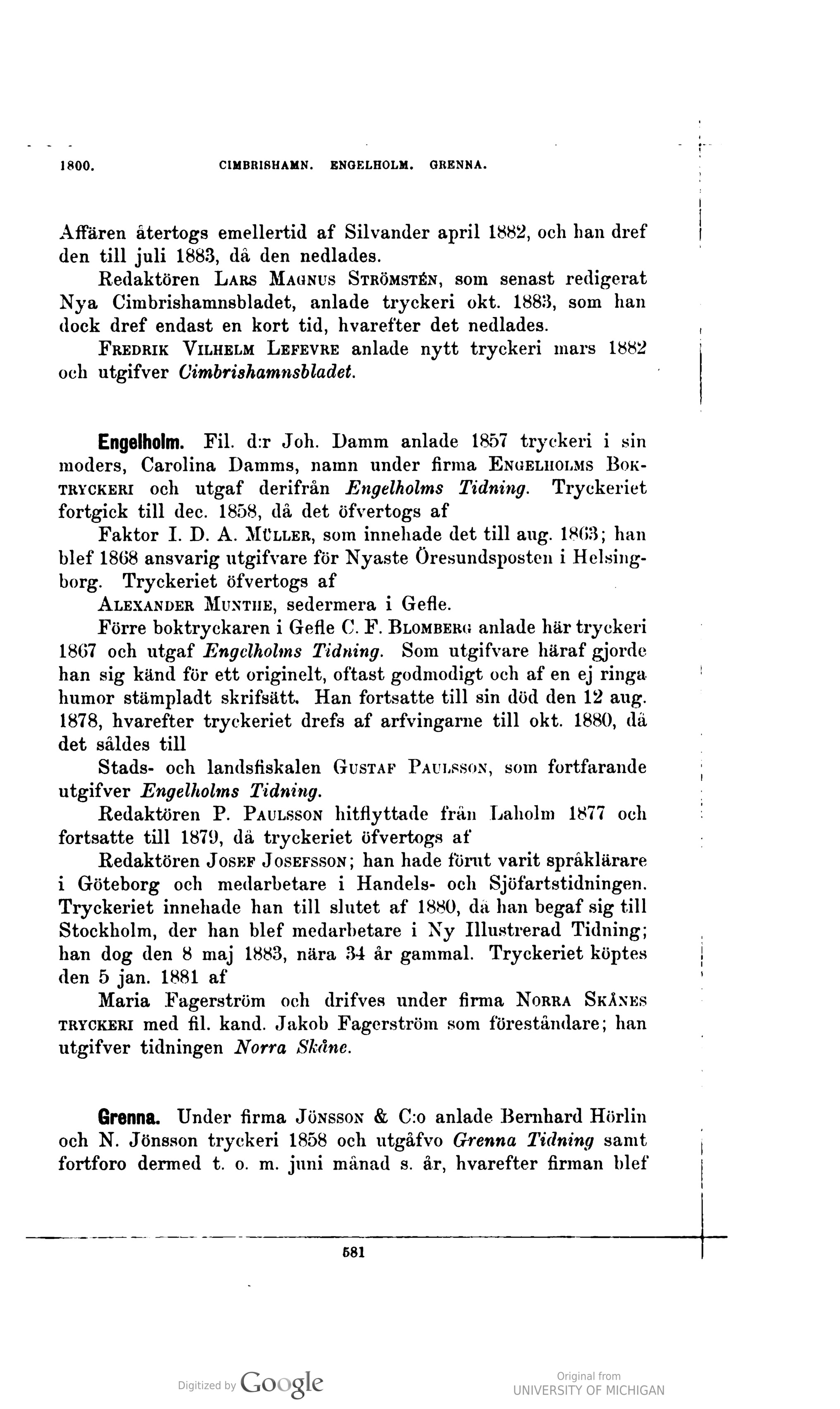 1878, hvarefter tryckeriet drefs af arfvingarne till okt. 1880, dä