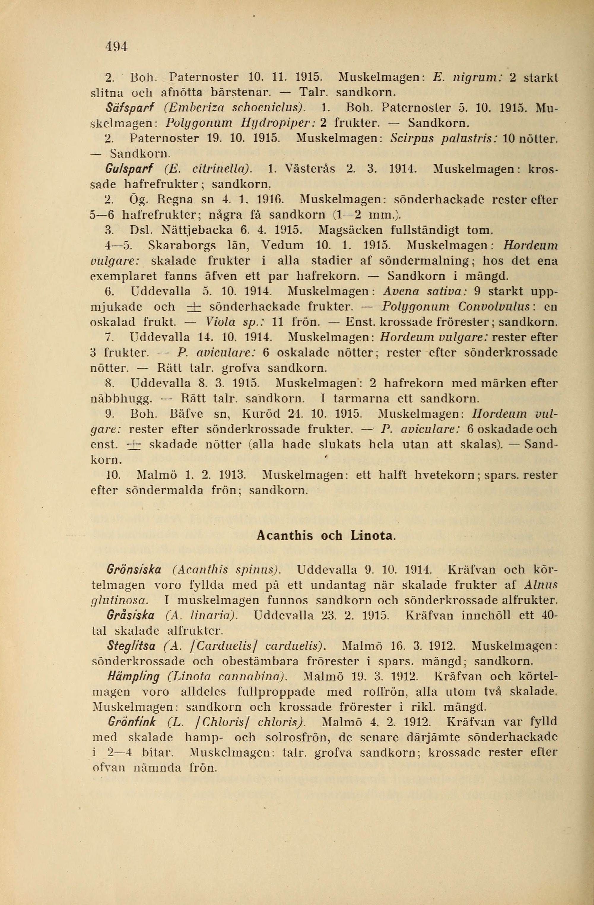 Gräsiska (A. linaria). Uddevalla 23. 2. 1915. Kräfvan innehöll ett 40-