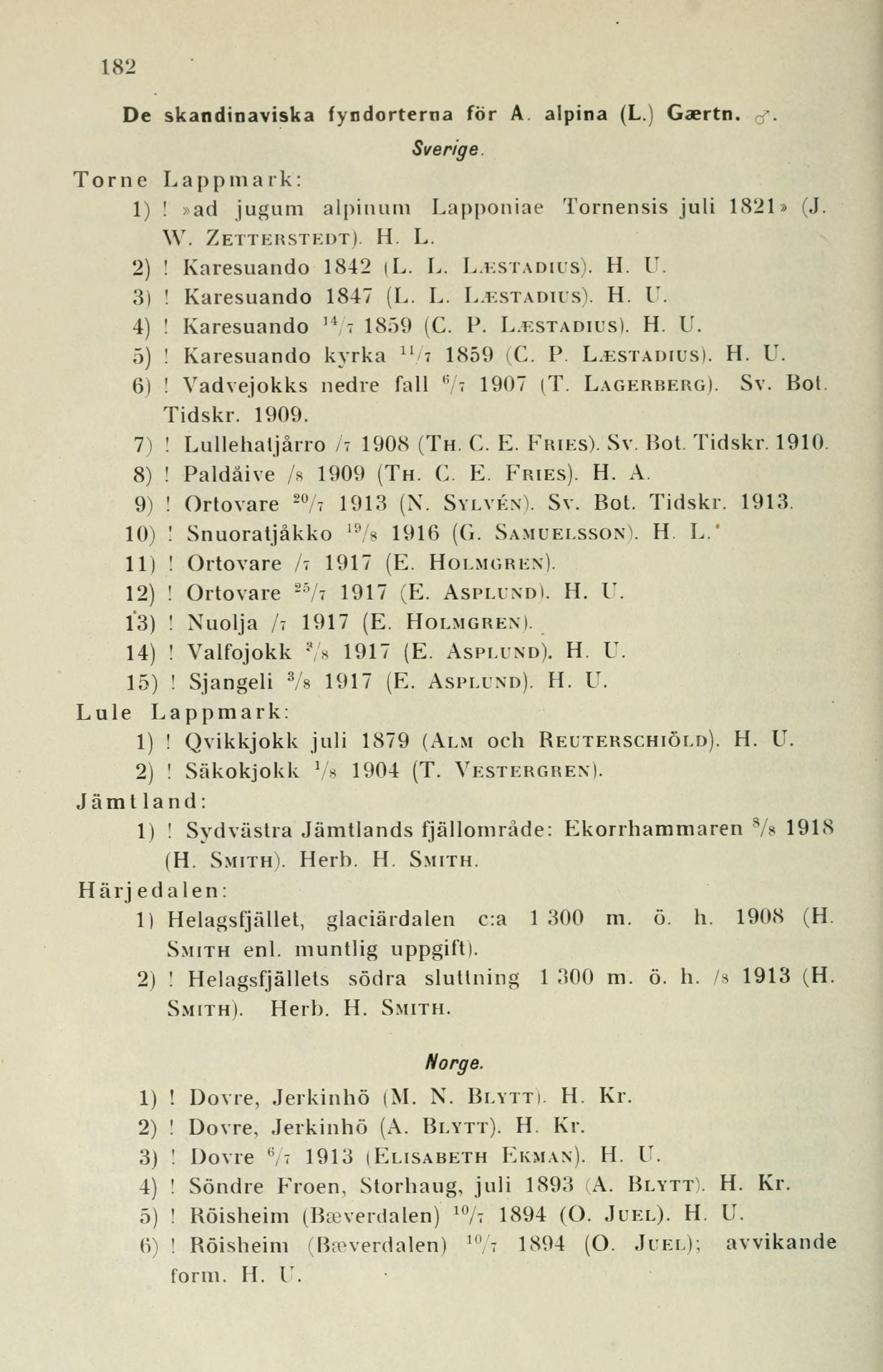 7) ! Lullehatjärro /: 1908 (Tu. C. E. Fries). Sv. Bot. Tidskr. 1910.