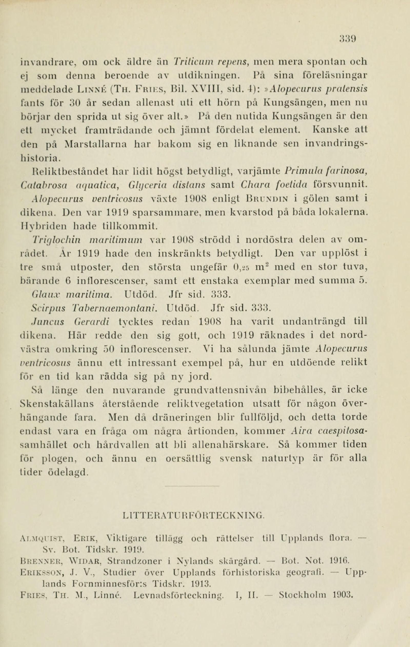 ALMQUIST, ERIK, Viktigare tillägg och rättelser till Upplands flora. —