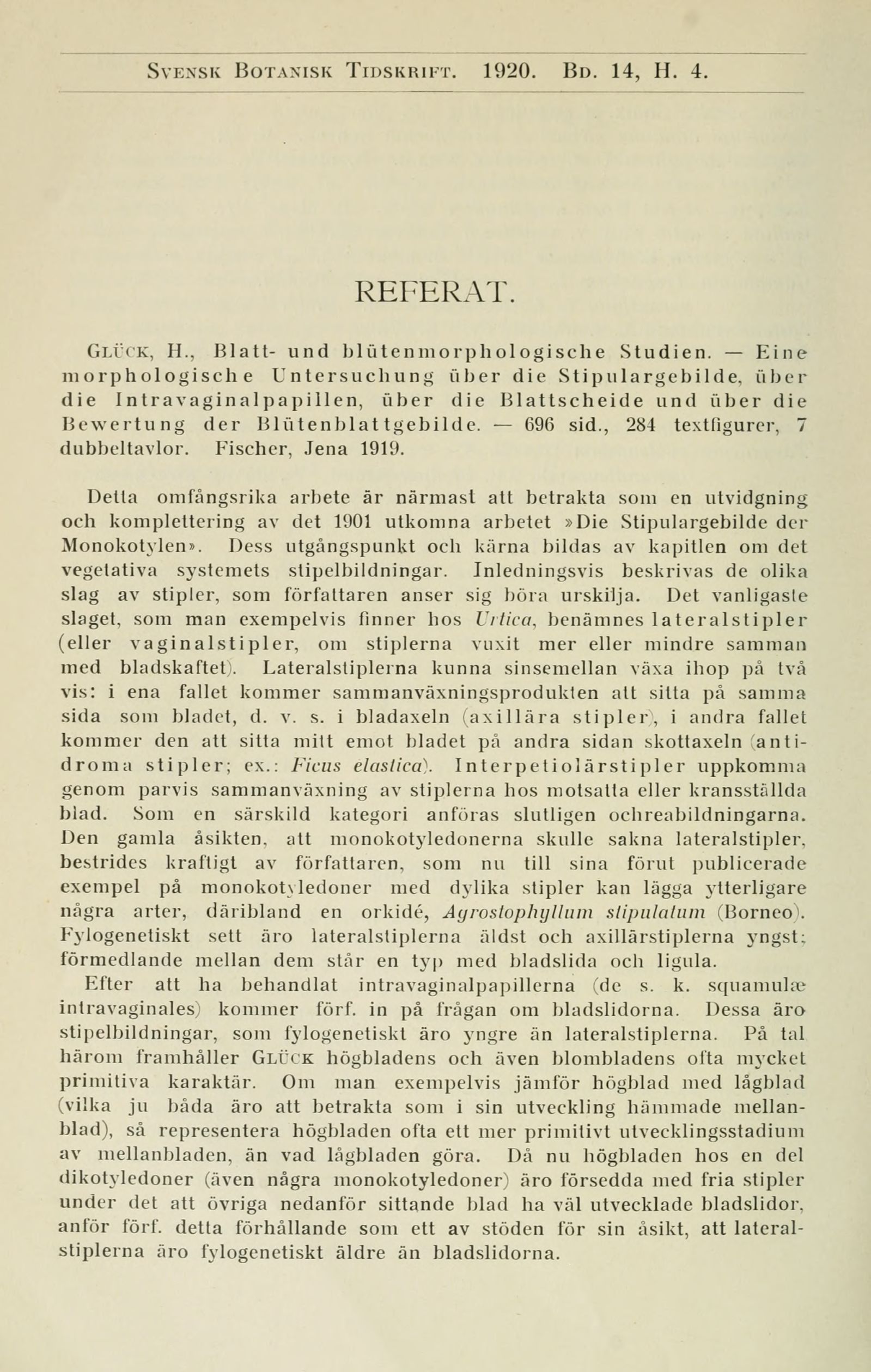SVENSK BOTANISK TIDSKRIFT. 192052 bp 14-9. 4. |