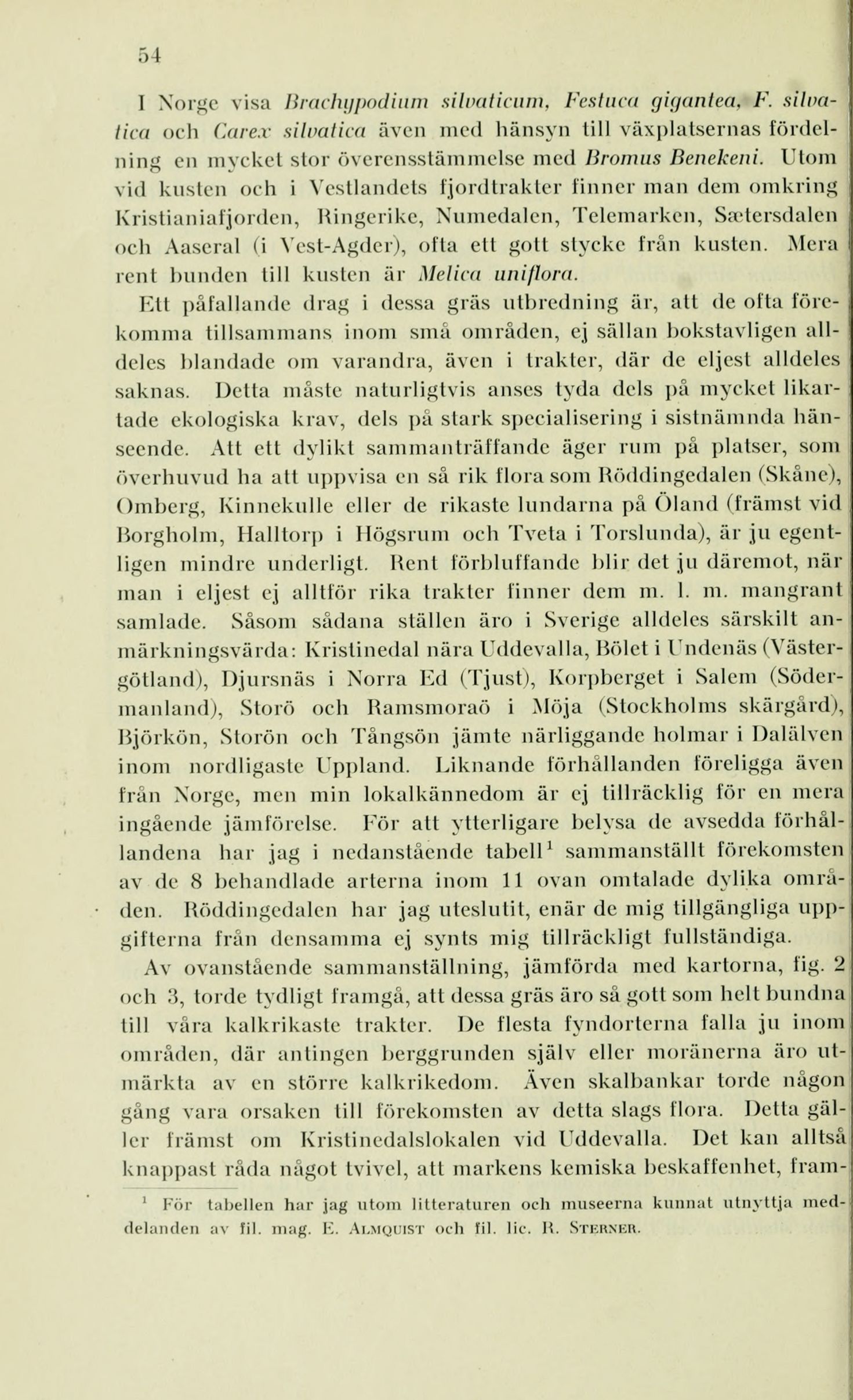 I Norge visa Brachypodium silvaticum, Festuca gigantea, F. silva-