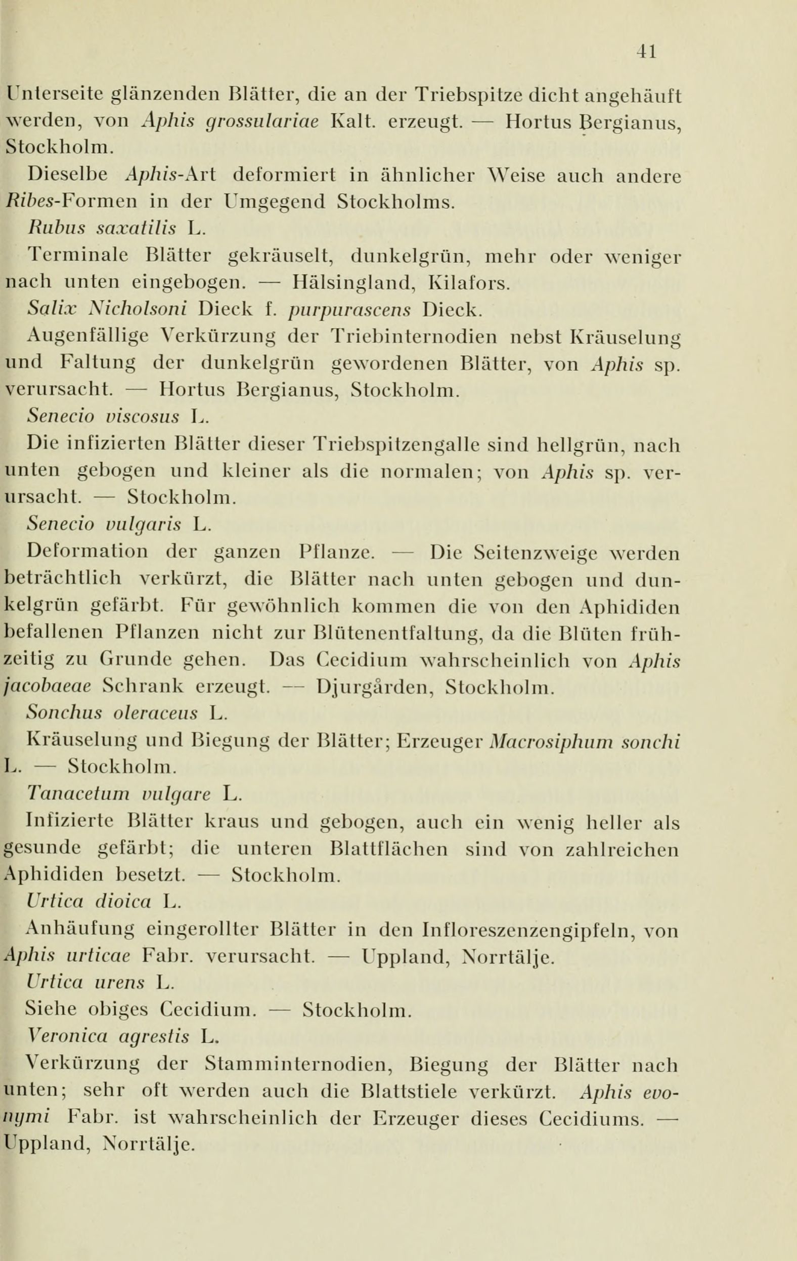 werden, von Aphis grossulariae Kalt. erzeugt. — Hortus Bergianus,