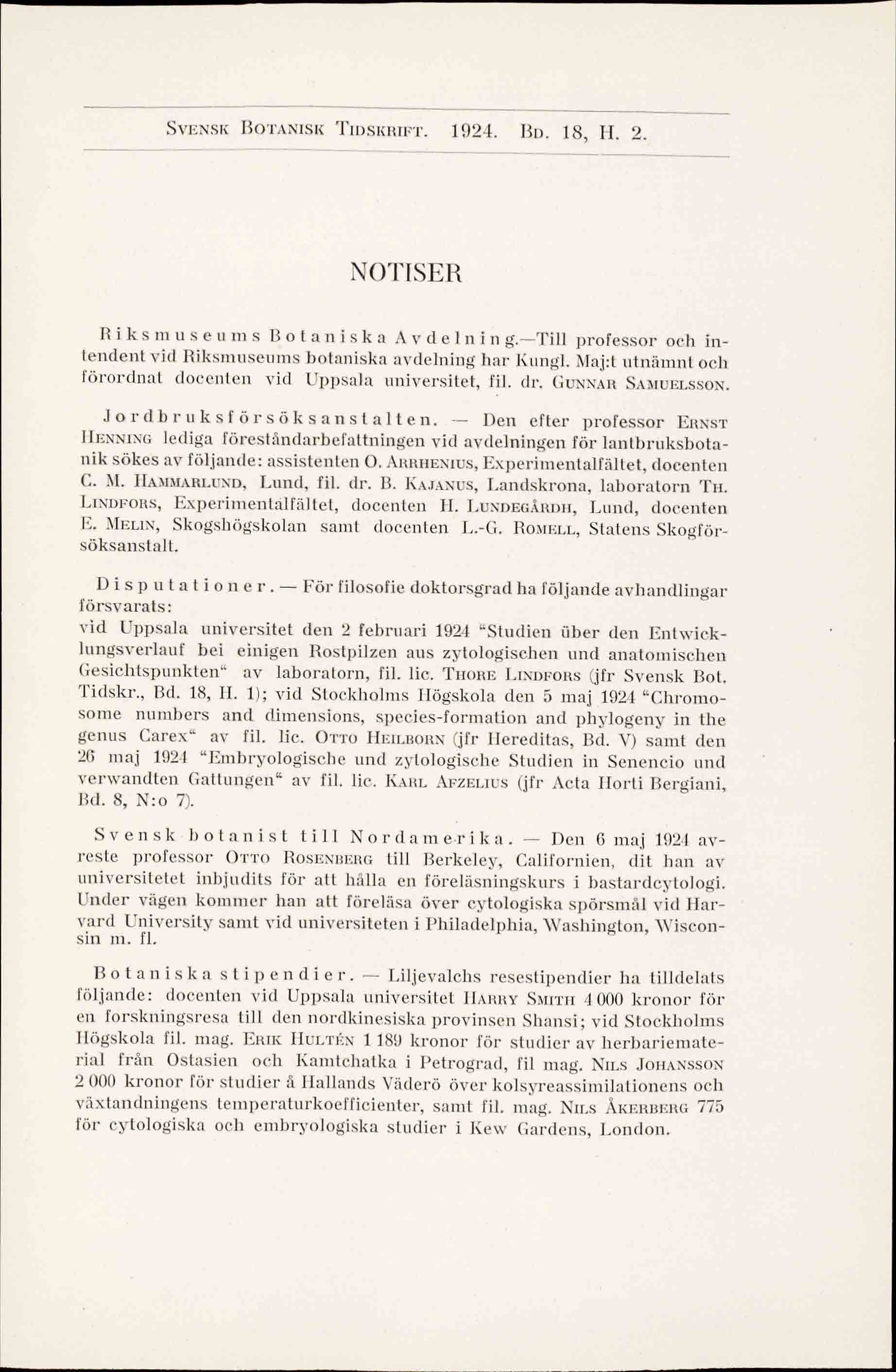 SVENSK BOTANISK TIDSKRIFT. 1924. Bo. 18, H. 2.