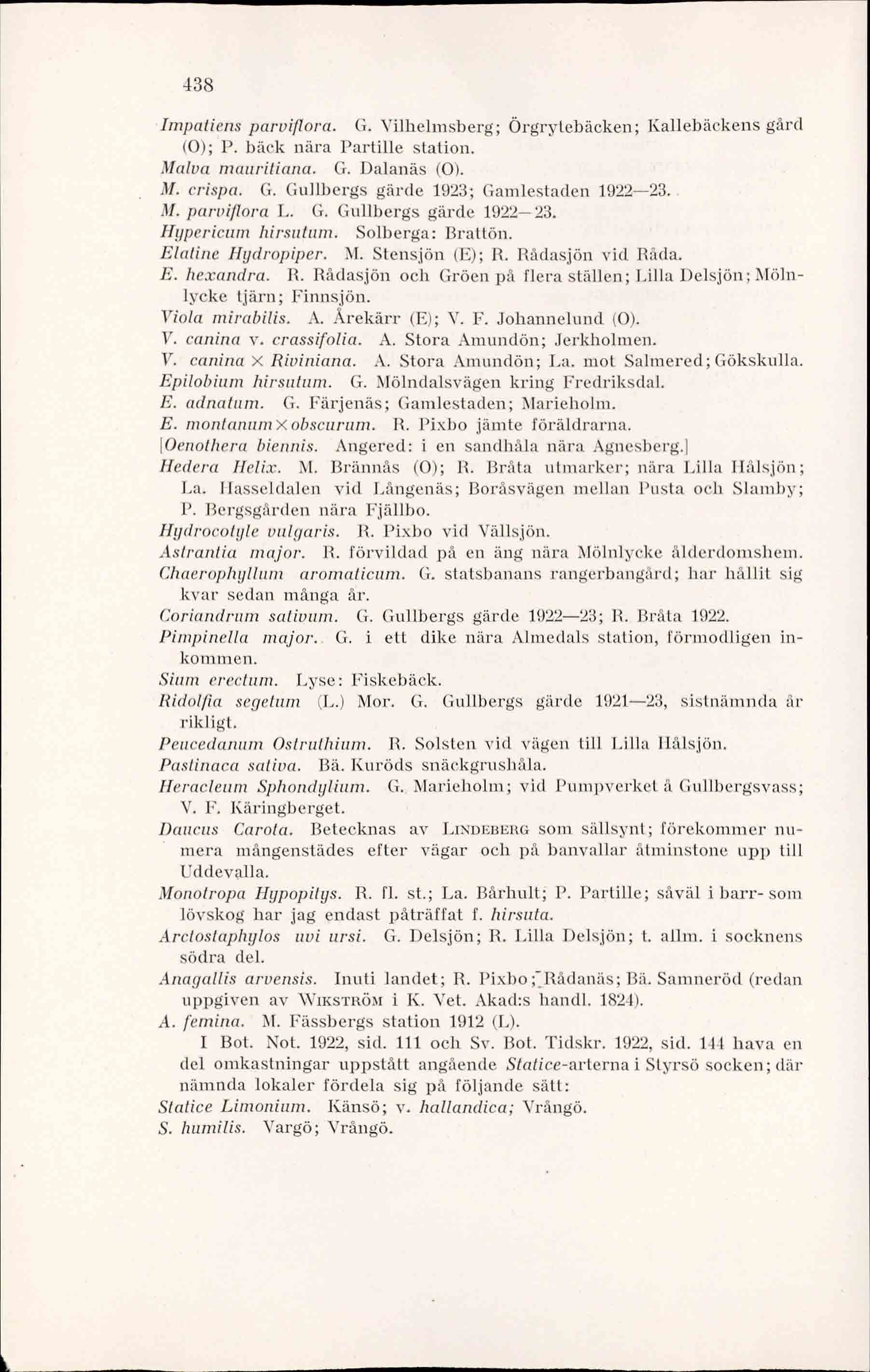 M. parviflora L. G. Gullbergs gärde 1922—23.
