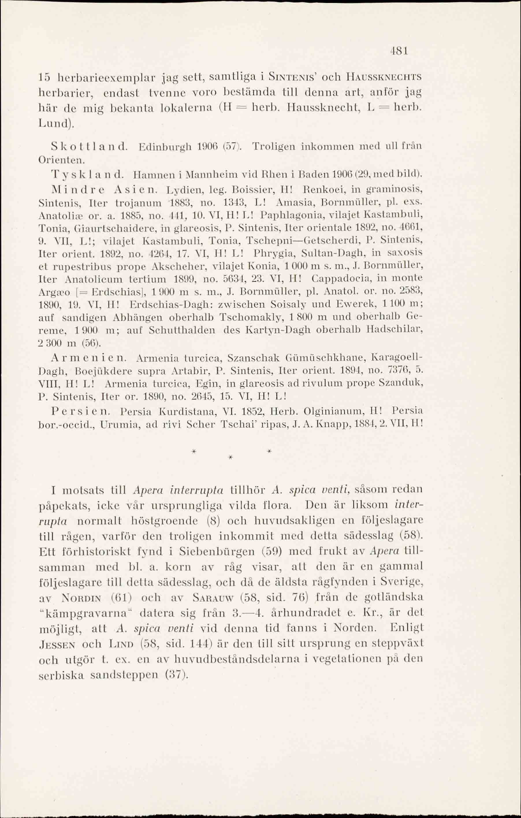 här de mig bekanta lokalerna (H = herb. Haussknecht, L = herb.