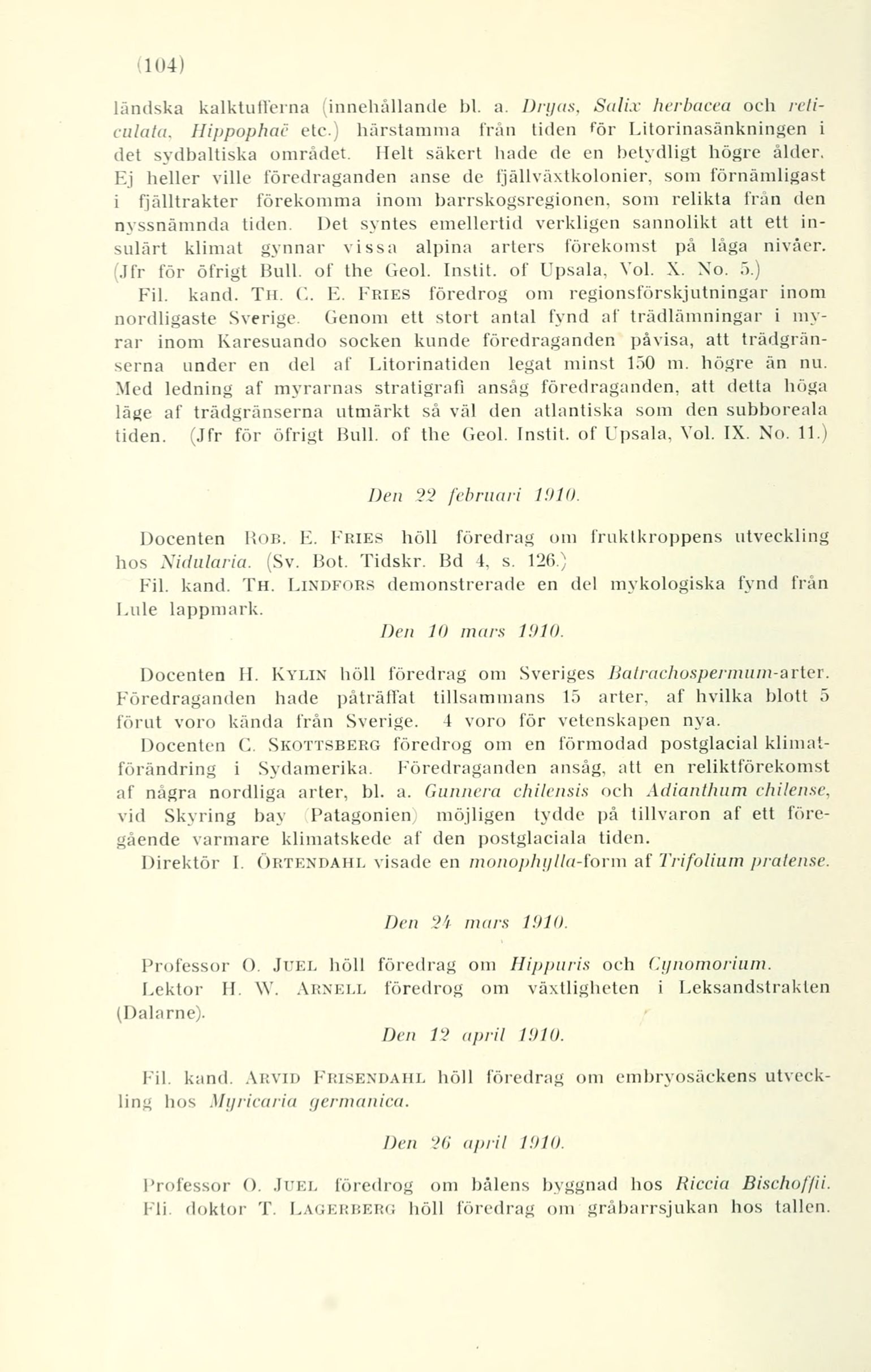 Docenten g. Skottsberg föredrog om en förmodad postglacial